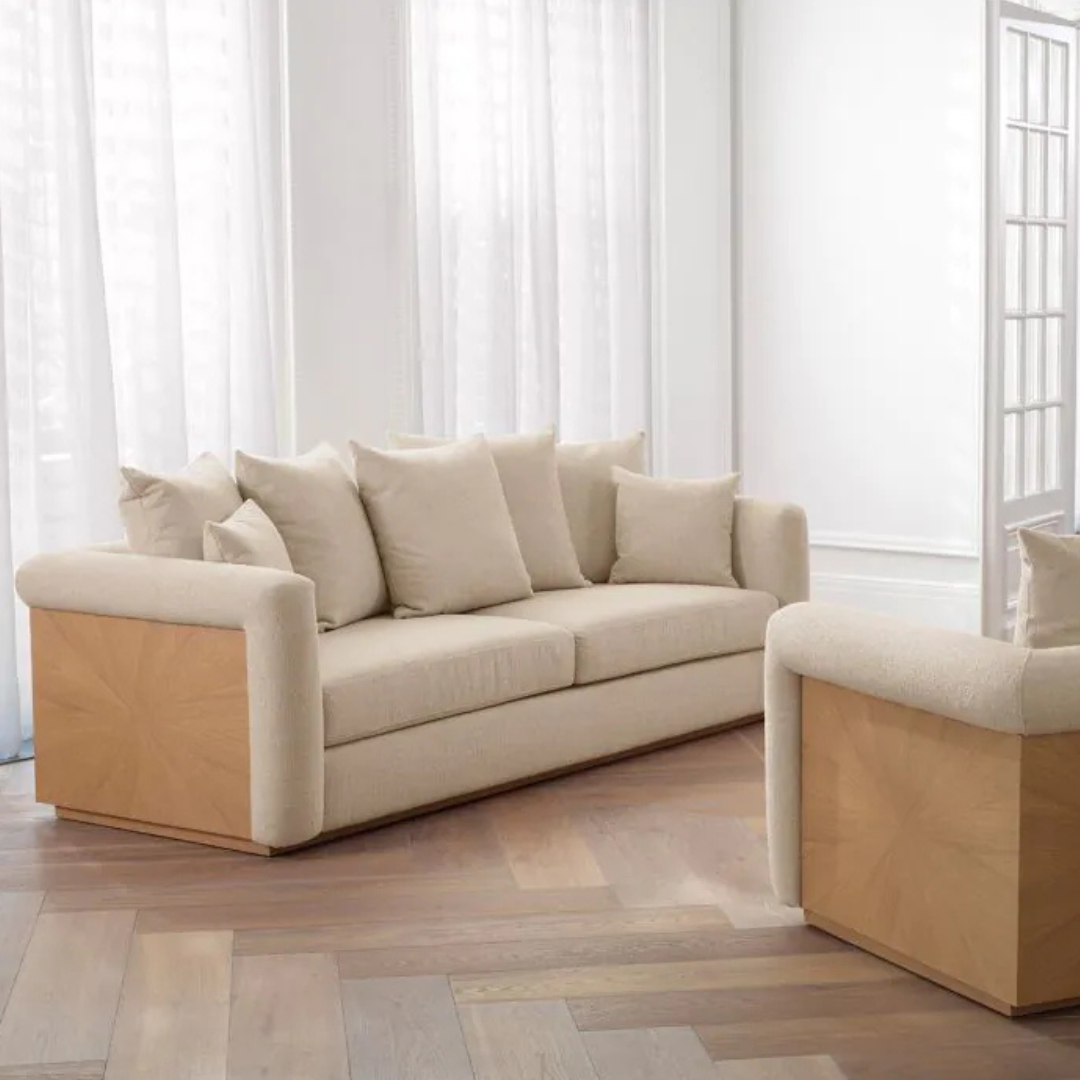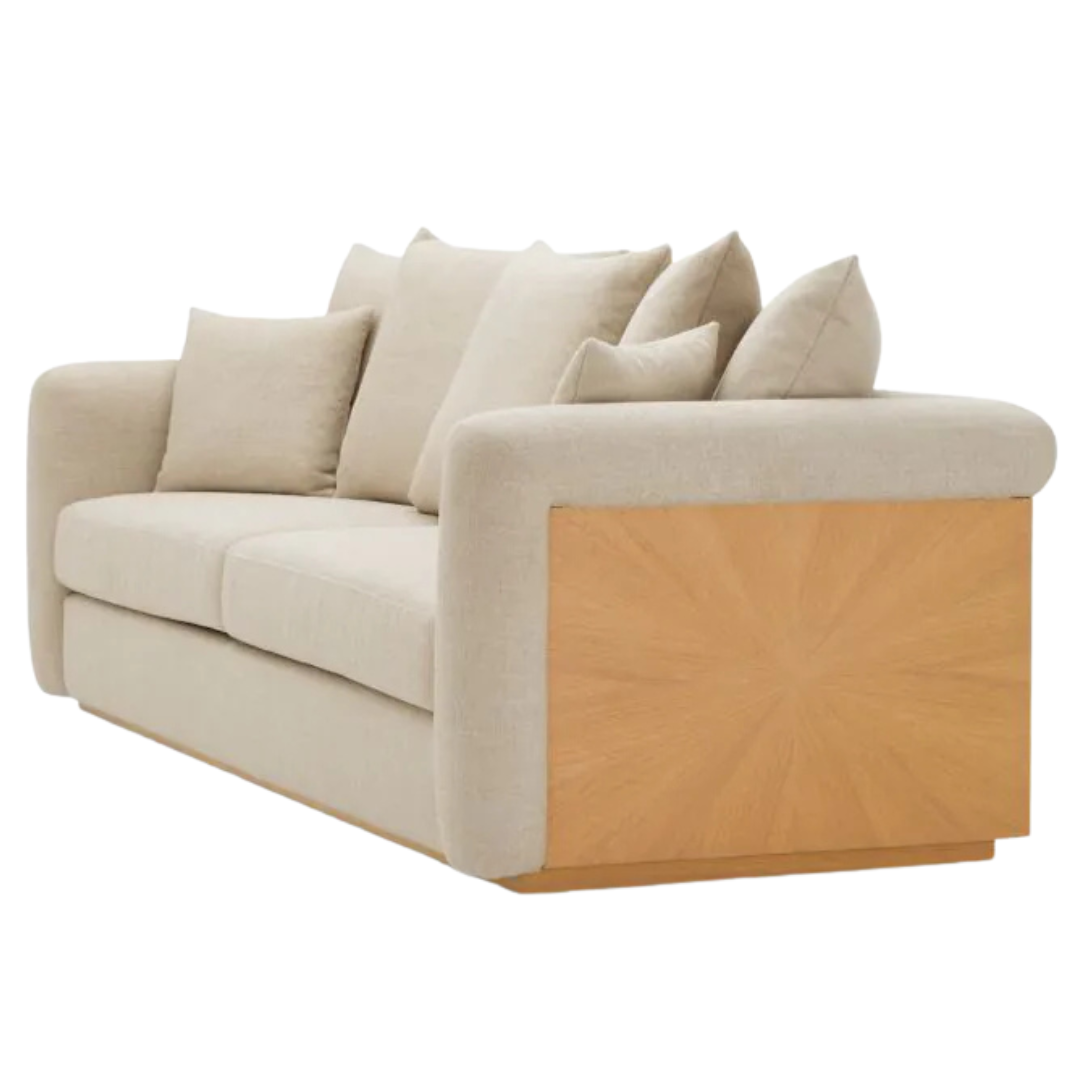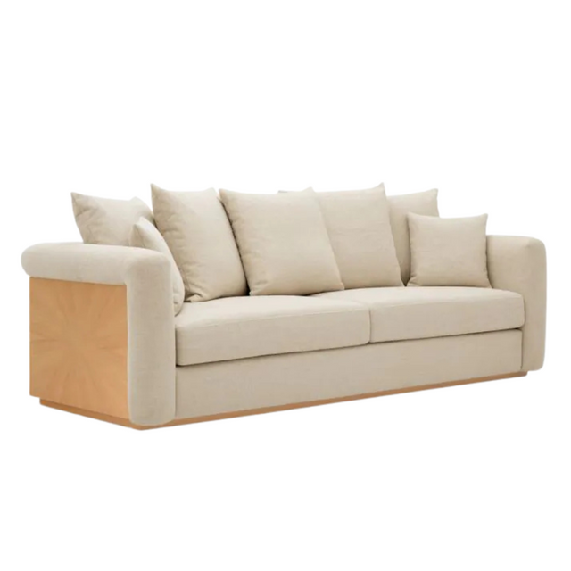 Bemutatjuk az Amadeo kanapét, ahol a természetes tölgyfa furnér lágy melegsége találkozik az ekrü színű szövet finom eleganciájával. Kifinomult sziluettje és finom textúrái harmonikus keveréket alkotnak a természetes szépség és a visszafogott luxus között, tökéletesen illeszkedve a kifinomult környezetbe, amely a kortalan dizájnt és a nyugodt kényelmet ünnepli. Kombináld az Amadeo fotellel a tökéletes összhang érdekében.