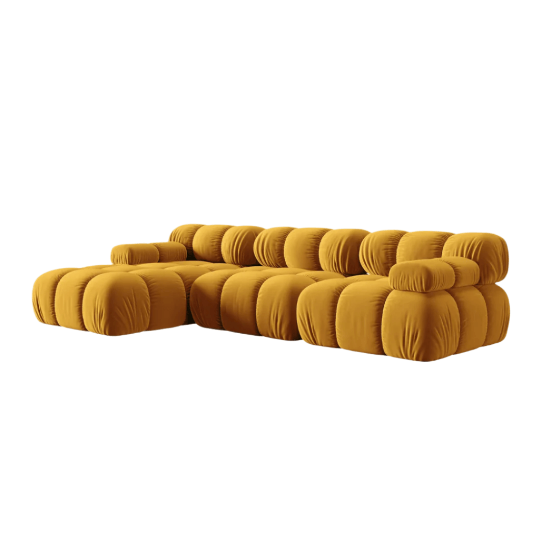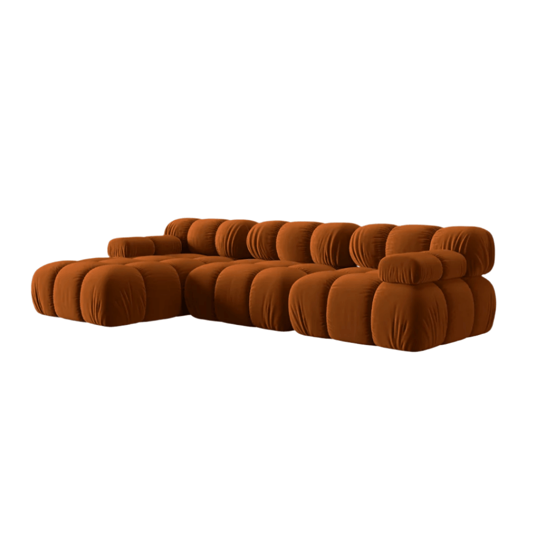 A modern és egyedi kialakítású Bellis sarokkanapé tökéletesen kiegészíti nappalidat. A 70-es évek innovatív dizájnja ihlette ezt a bútort, amely a feltűnő sziluetteket a kényelemmel ötvözi. Hívogató otthonosságot áraszt, míg a puha bársony huzat a lágyság és a kényelem elragadó kombinációját biztosítják. Tizenhárom különböző színben, és jobbos változatban is kapható, így könnyedén megtalálhatod a számodra legmegfelelőbbet.