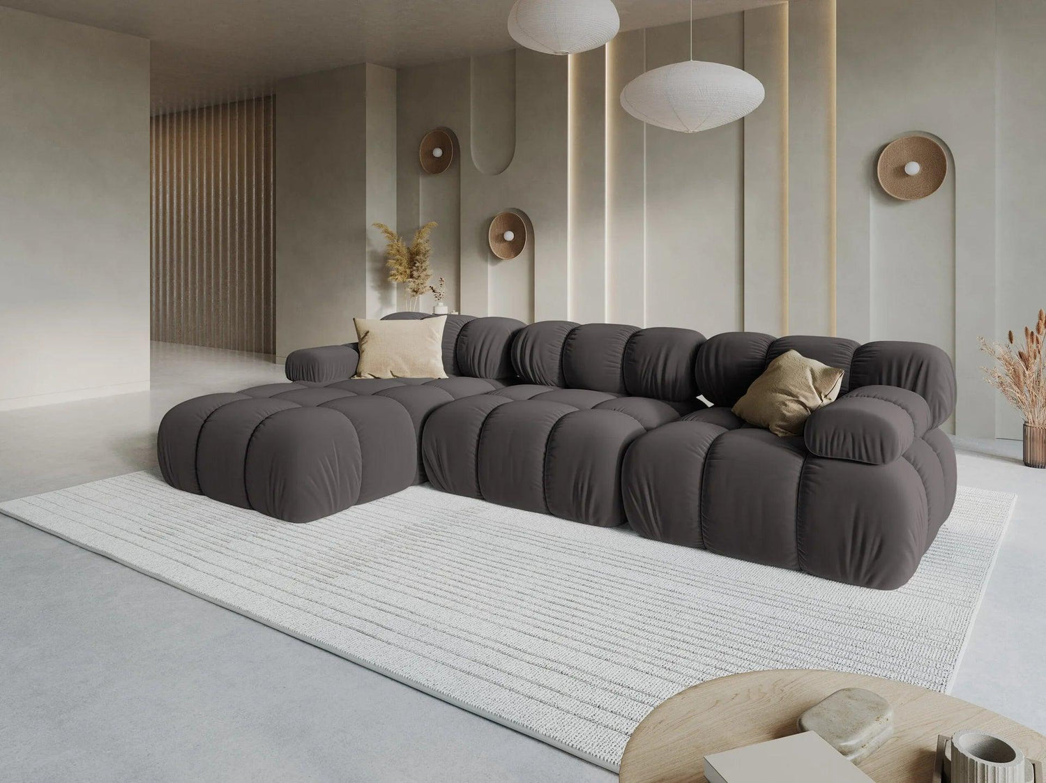 Bellis balos bársony sarokkanapé 282x155 - Sötétszürke utólagos megrendelésre kerül, és azonnal kiszállítjuk, amint újra raktáron van.