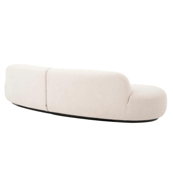 Élvezd a Björn 4,5 személyes buklé kanapé kényelmét és nagyszerű dizájnját. Könnyedén illeszkedik bármilyen modern és kortárs berendezésű enteriőrbe és a hagyományos belső terekhez is remekül passzol. Organikus formáját puha tapintású, krémszínű buklé szövettel kárpitozták, amelyet egy fekete talprész egészít ki. Kombináld az Eichholtz Björn kollekció többi darabjával!