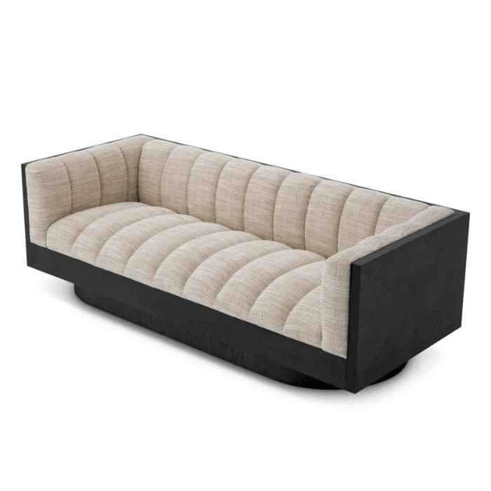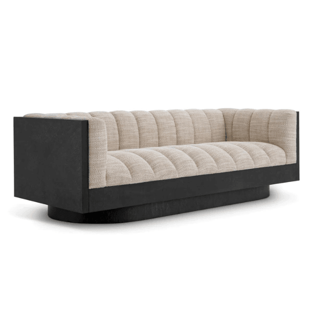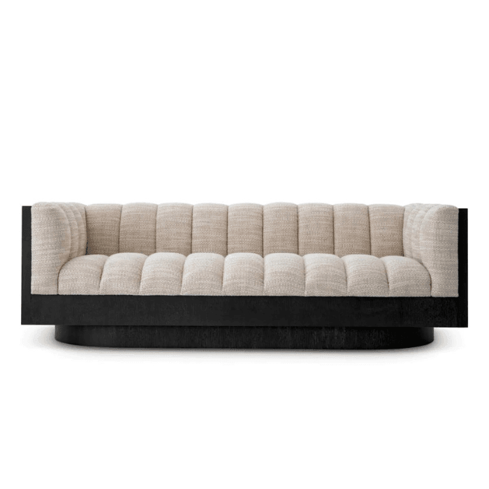 Merülj el az Eichholtz Davide szövet kanapé luxusában, amely tökéletesen ötvözi a kényelmet és az eleganciát. Ez az ikonikus darab nyugalmat sugároz. A kifinomult fekete talapzat modernitást kölcsönöz neki, megteremtve az egyensúlyt a kortárs és az időtlen dizájn között. A kárpitozás vertikális vonalvezetésének köszönhetően vonzó, dimenzionális hatást kelt. Nem csupán egy bútordarab, hanem a kifinomult ízlés és elegancia kifejezése, amely egyedi varázsával gazdagítja otthonod.