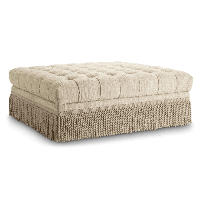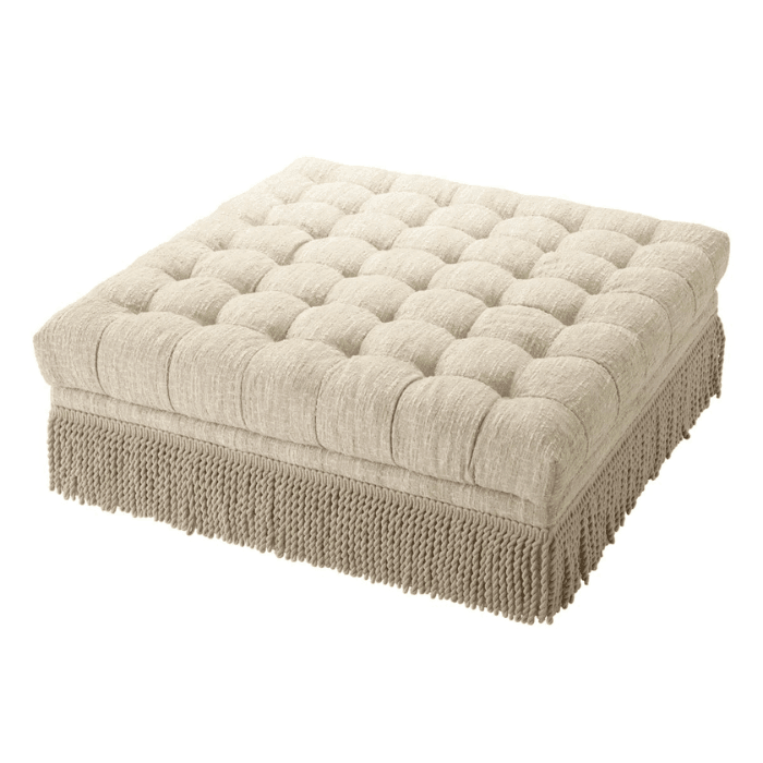 Emeld otthonod színvonalát új magasságokba az Eichholtz időtlen Dorantes buklé ottománnal. Ez a luxus buklé szövetbe burkolt ikonikus darab lenyűgöző kézműves munkával, díszes kialakítással és elegáns rojtokkal büszkélkedhet. Fedezd fel az Eichholtz által képviselt páratlan stílust és kényelmet. A Dorantes buklé ottomán a luxus enteriőrök tökéletes kiegészítője. Kiválóan kombinálható a Dorantes kollekció kanapéjával és lábtartójával.