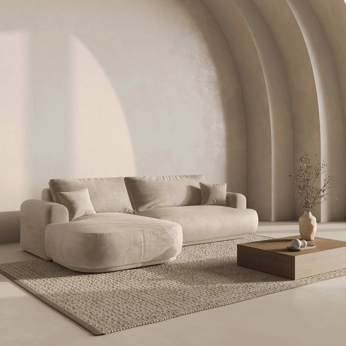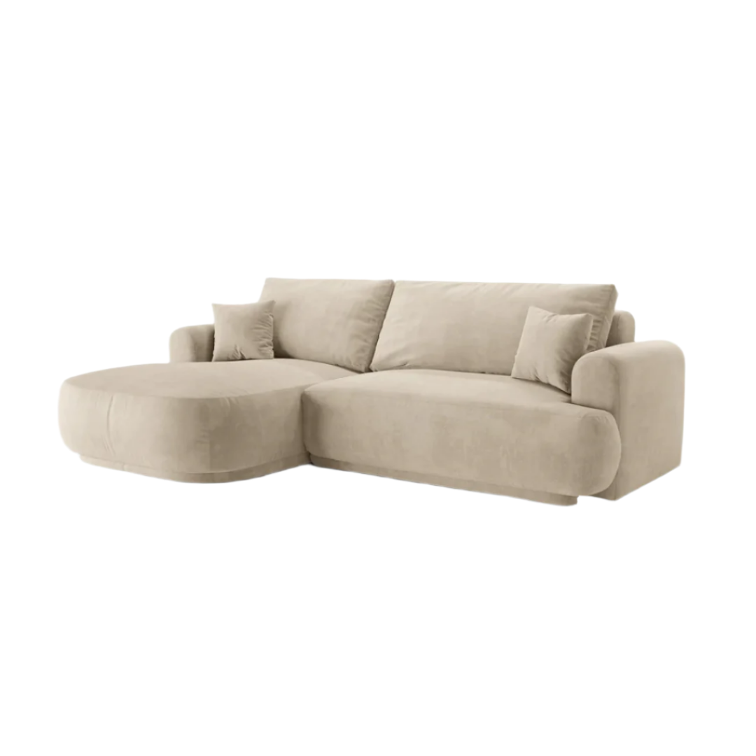 Ella balos bársony sarokkanapé - Bézs utólagos megrendelésre kerül, és azonnal kiszállítjuk, amint újra raktáron van.