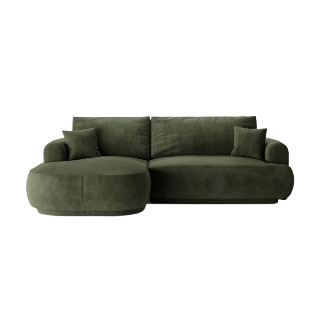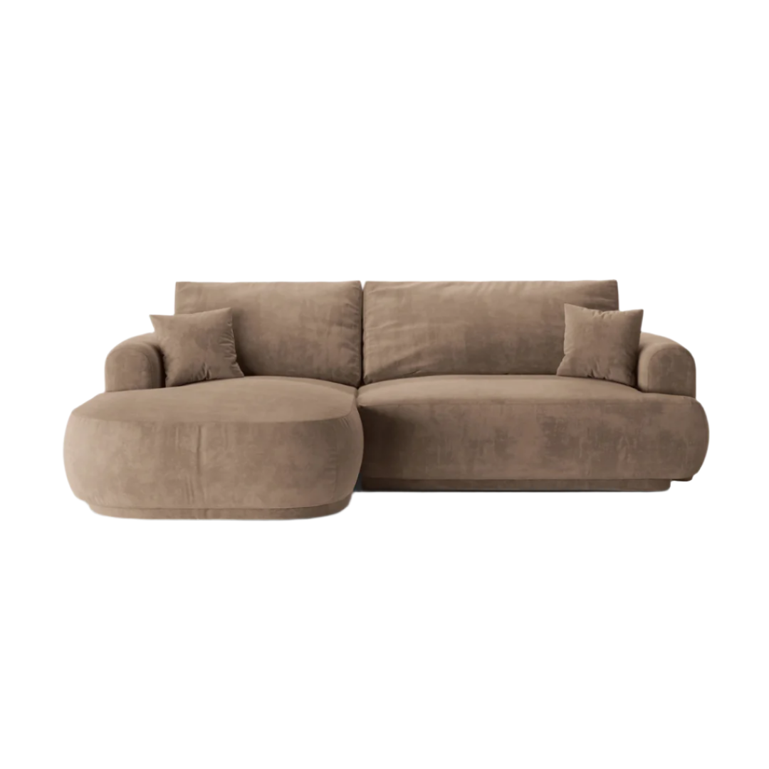 Az alvó funkcióval, dekoratív párnákkal, és ágyneműtartóval rendelkező Ella sarokkanapé, egy elegáns, és praktikus bútordarab. A stílusos ülőfelületet bájos retro ívek jellemzik, amelyeket a mindennapi kényelem érdekében terveztek. A finom tapintású bársony kárpitozás, és a hatféle színválaszték miatt könnyedén illeszkedik minden belső térbe. Jobbos változatban is elérhető.