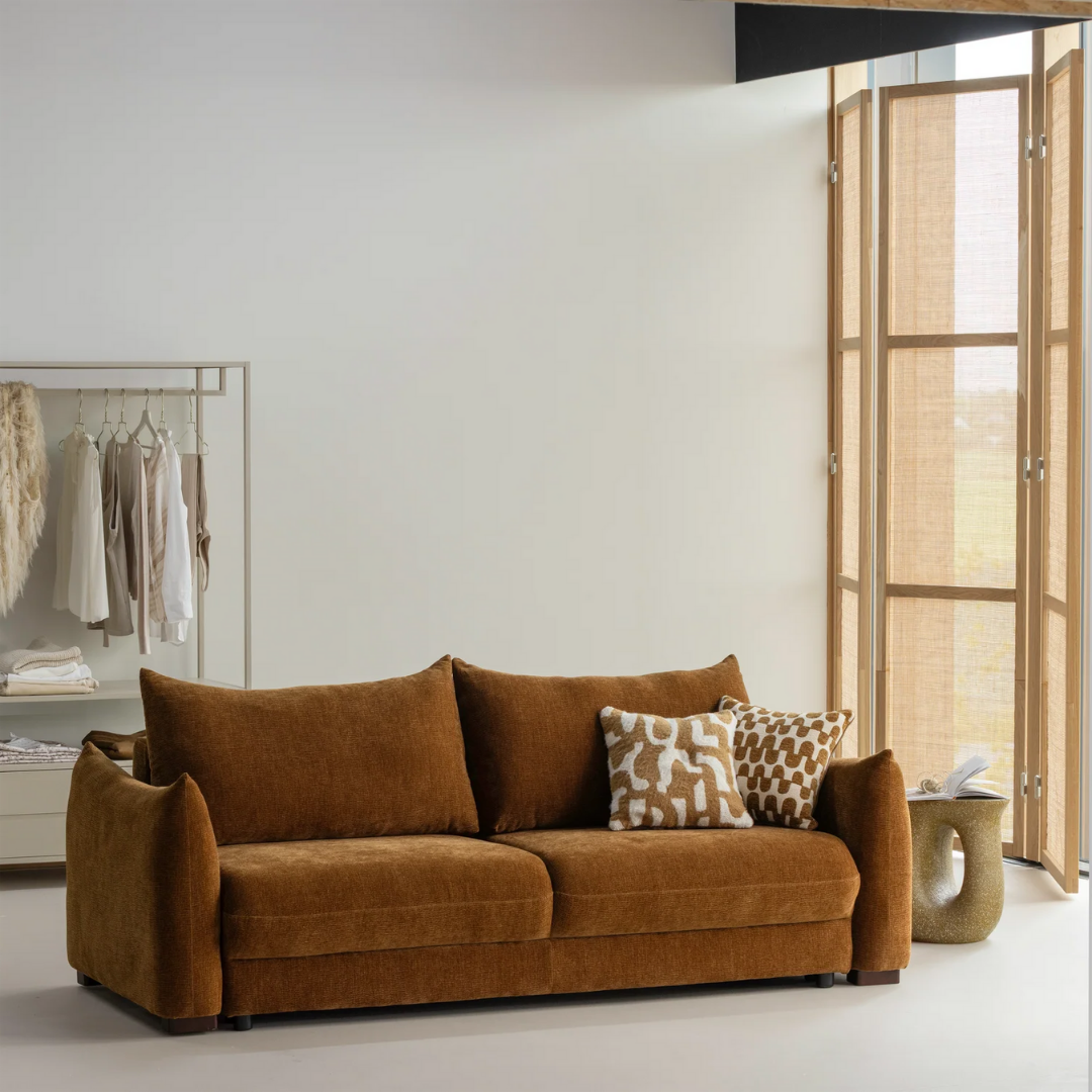 A holland Woood lakberendezési márka Jonne kanapéágya a stílust, a kényelmet és a funkcionalitást ötvözi. Napközben a luxus zsenília kárpitozásnak köszönhetően puha, hívogató ülőalkalmatosságban lehet részed, este pedig a kanapé pillanatok alatt teljes méretű ággyá alakítható. Időtlen dizájnjával és finom tapintású anyagával a Jonne melegséget és hangulatot visz bármilyen enteriőrbe. Sötétbarna, és világosbarna színekben érhető el.