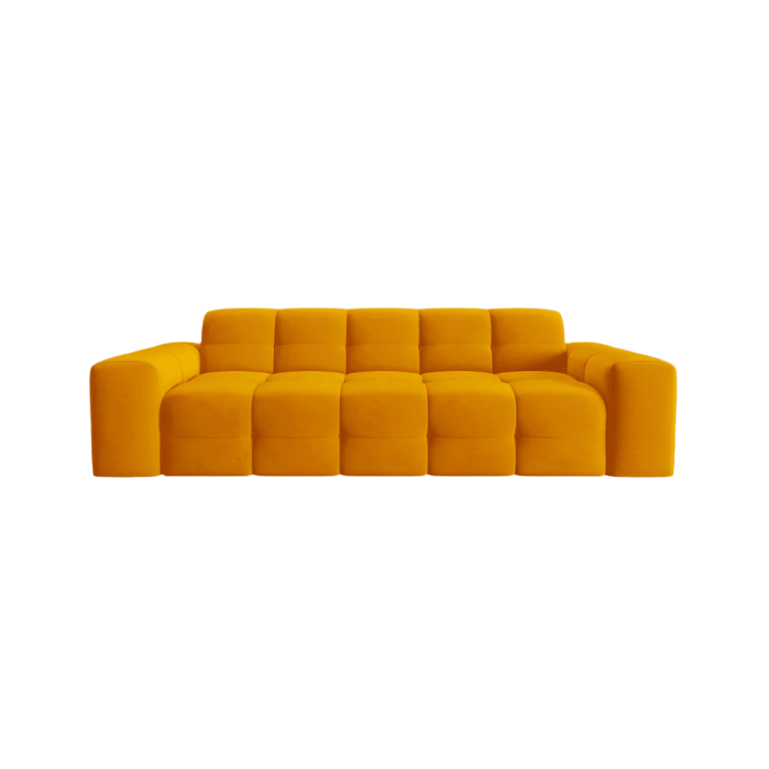 A Kendal kanapét a kárpitozásban látványos tűzések és varrások jellemzik. A jellegzetes buborékszerű ülések, háttámlák, karfák és lábak pihenésre csábítanak, és modern megjelenést kölcsönöznek. Ez a figyelemre méltó bútordarab vonzza a tekintetet, de ami még fontosabb, rendkívül hangulatos, amit a kényelmes bársony kárpitozás garantál. A Kendal hatféle színben, és különböző méretekben kapható.