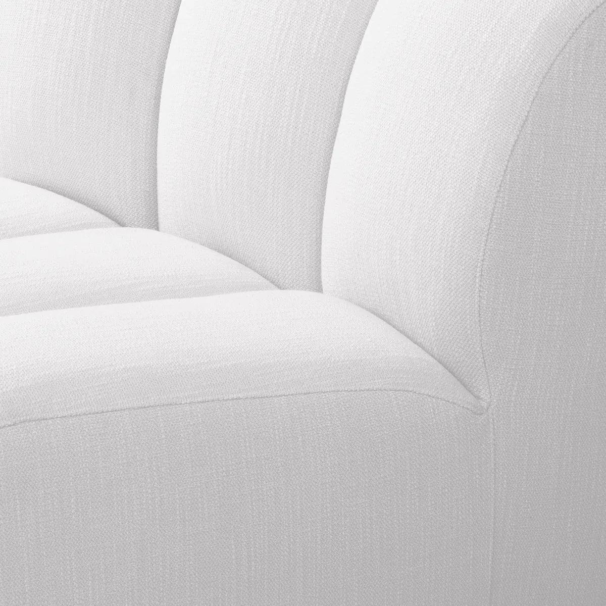 Az Eichholtz Lando szövet kanapé sorozata elegáns köntösbe burkolva értelmezi újra a klasszikus kanapékat. Engedd szabadjára képzeleted és hozz létre olyan ülőgarnitúrát, amely tökéletesen illeszkedik hozzád: legyen az balos vagy jobbos sarokkanapé, egy félkör alakú kanapé vagy akár egy kényelmes C-alakú ülőhely. Ez az íves kivitelezésű kanapéelem tökéletes alapot nyújt bármilyen összeállításhoz, fehér kárpitozása pedig még különlegesebbé teszi. Képzeld el, ahogy ez a lenyűgöző bútor az otthonod fókuszpontjává válik és minden vendég ámulattal tekint rá. Az elegáns kárpit nemcsak kényelmet, hanem luxust is biztosít, miközben a kanapé egyedi kialakítása különleges karaktert ad a térnek.