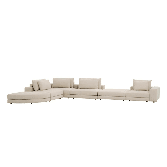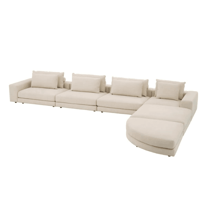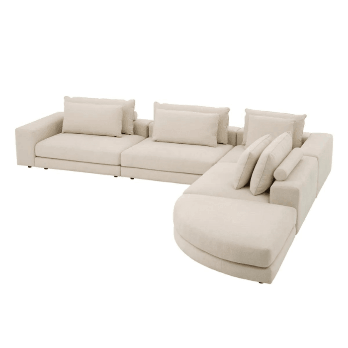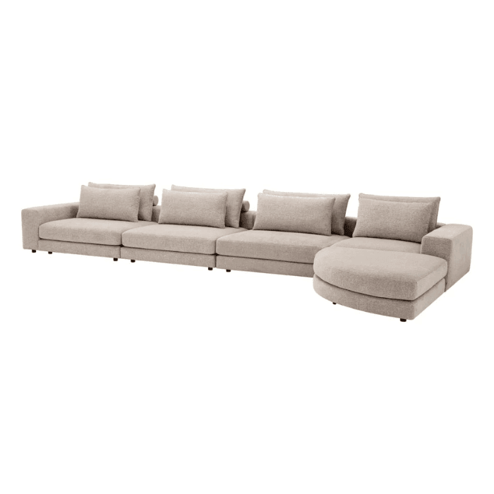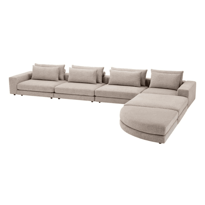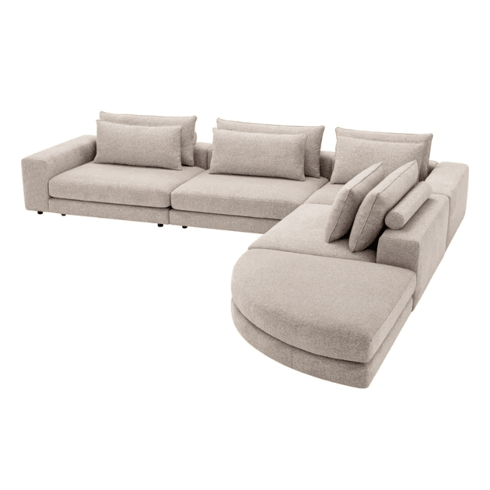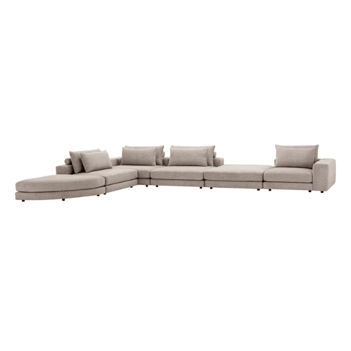 Pihenj stílusosan a Lounge Club szövet kanapé segítségével, amely egy igazán sokoldalú, moduláris darab, így könnyedén igazodik a igényeidhez. Innovatív kialakítása lehetővé teszi, hogy különböző elrendezéseket alakíts ki, amelyek tökéletesen illeszkednek a berendezésre váró térhez. A félkör alakú ottomán nemcsak a megjelenést fokozza, hanem a pihenés és a kényelem élményét is. A karcsú fekete lábak pedig modern és elegáns megjelenést kölcsönöznek a kanapénak. Könnyedén variálhatod az elrendezést, hogy mindig az adott pillanatnak vagy események megfelelő teret hozhass létre.