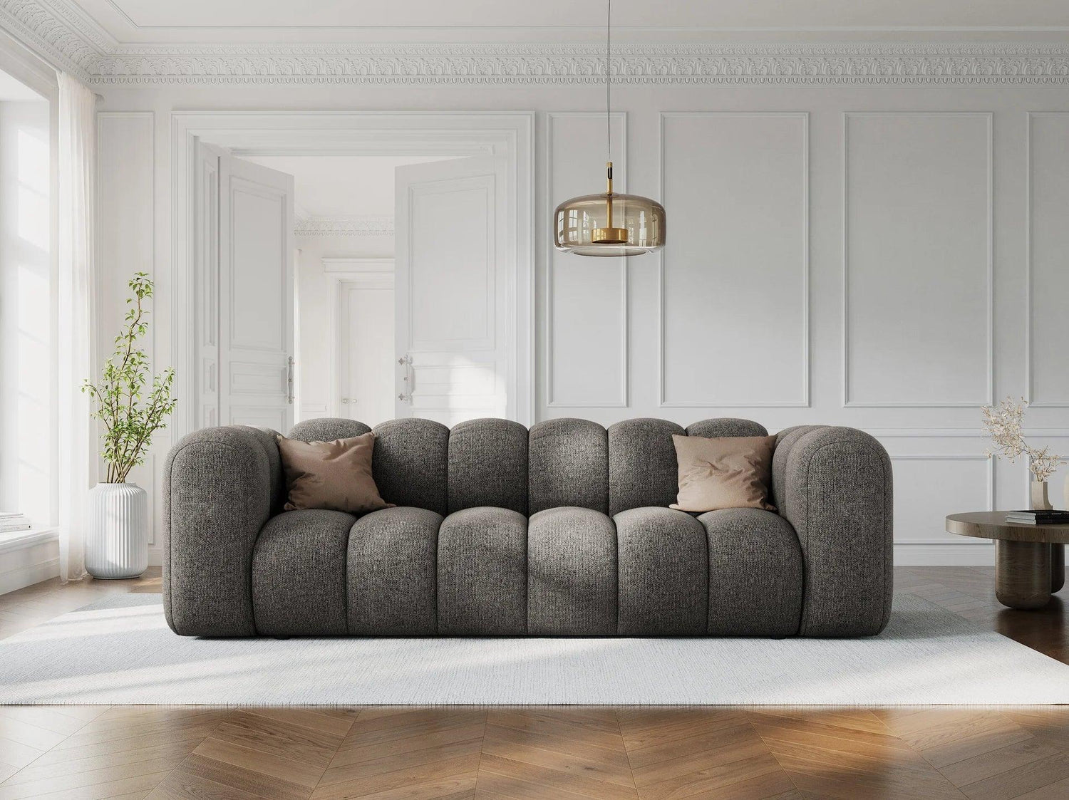 Ha szereted a kifinomult, lekerekített bútorokat, érdemes közelebbről is megnézned a Lupine kanapét. Ez a bútor eleganciát áraszt, pihenésre, beszélgetésre és páratlan kényelemre csábít. A dizájn futurisztikus és ívelt formát vonultat fel, amelyet a mély varrások fokoznak, így gyönyörű hullámhatást keltenek a felületen. A kanapé kompakt, mégis részletgazdag felépítésű, formázott háttámlákkal. A Lupine elegáns zsenília huzattal nyolcféle színben érhető el.