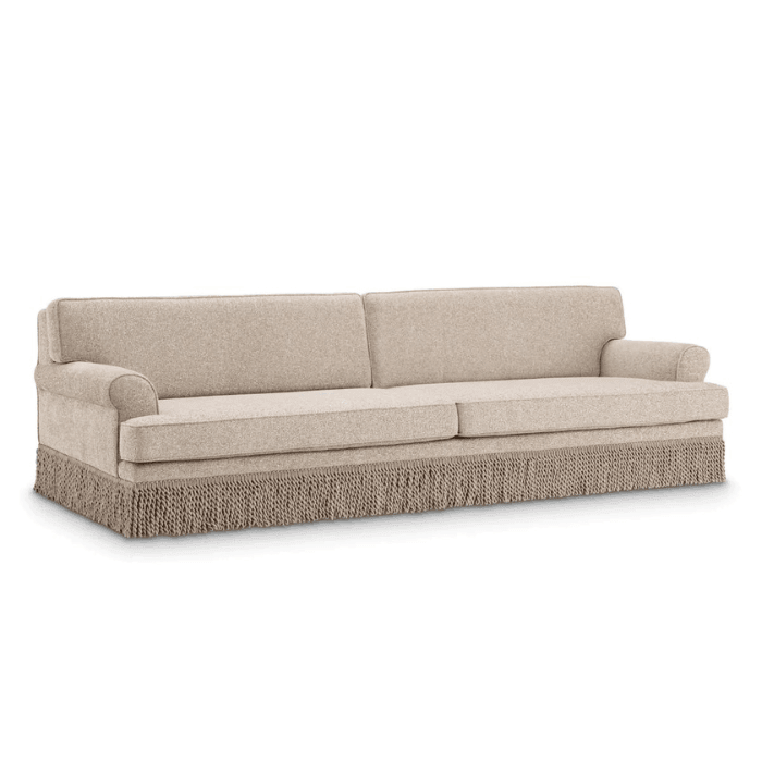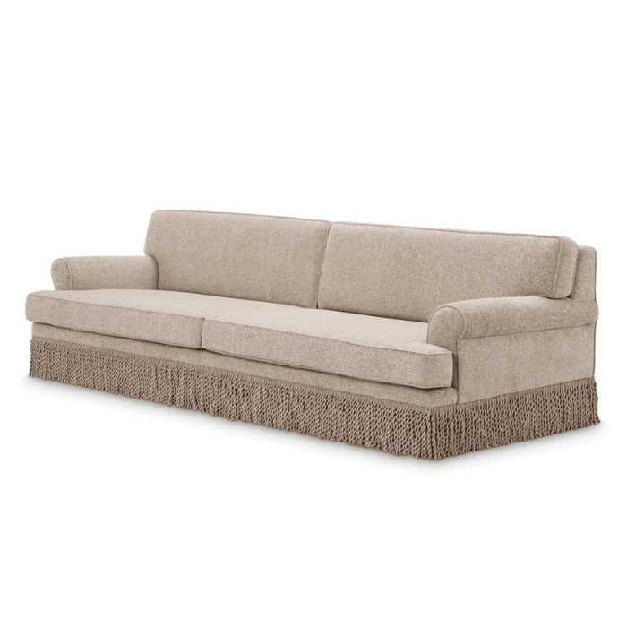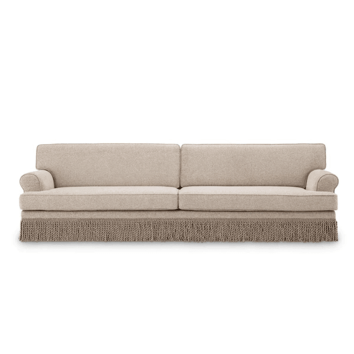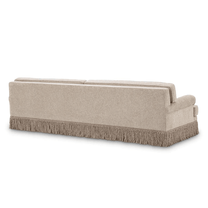 A Madison szövet kanapé egy amerikai és európai inspirációjú remekmű, modern csavarral megfűszerezve. A kanapé formatervezése a Metropolitan Művészeti Múzeum nagy csarnokának grandiózus méreteiből és színpalettájából merít ihletet. Ez a lenyűgöző kanapé finom rojtokkal van díszítve, amelyek eleganciát kölcsönöznek neki. Világos színű kárpitozása fekete alappal került kiegészítésre, így tökéletesen ötvözi a klasszikus és kortárs dizájnt. Az új The Met x Eichholtz kollekció New York városának ikonikus látképére tekint, megörökítve Manhattan művészi és dinamikus szellemét. Ezek a mesés bútordarabok arra szolgálnak, hogy otthonodban saját művészeti gyűjteményed háttereként funkcionáljanak, áthidalva évszázadokat és kultúrákat.
