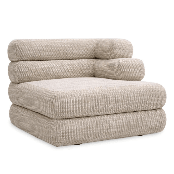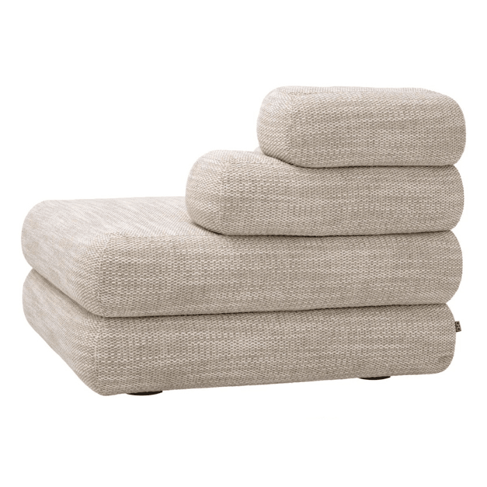 Fedezd fel a moduláris Malaga szövet kanapé nyújtotta luxust, amely kifinomult homokszínű kárpitozással készült. Az Eichholtz jellegzetes kézművességét tükrözve ez a kanapé elengedhetetlen darab egy modern életstílushoz. Ez a moduláris elem elegáns kényelmet visz a nappalidba és lehetővé teszi, hogy egyedi ülőhelyet alakíts ki. Bátran kombináld más darabokkal a Malaga kollekcióból, de önmagában is remekül használható. Emellett a kanapé tökéletesen ötvözi a stílust és a funkcionalitást, így bármilyen belső térben megállja a helyét. Az egyedi kialakítás lehetőséget ad arra, hogy mindig új variációkat próbálj ki a térben. Élvezd a modern luxust és teremts olyan életteret, amely igazán a tiéd!