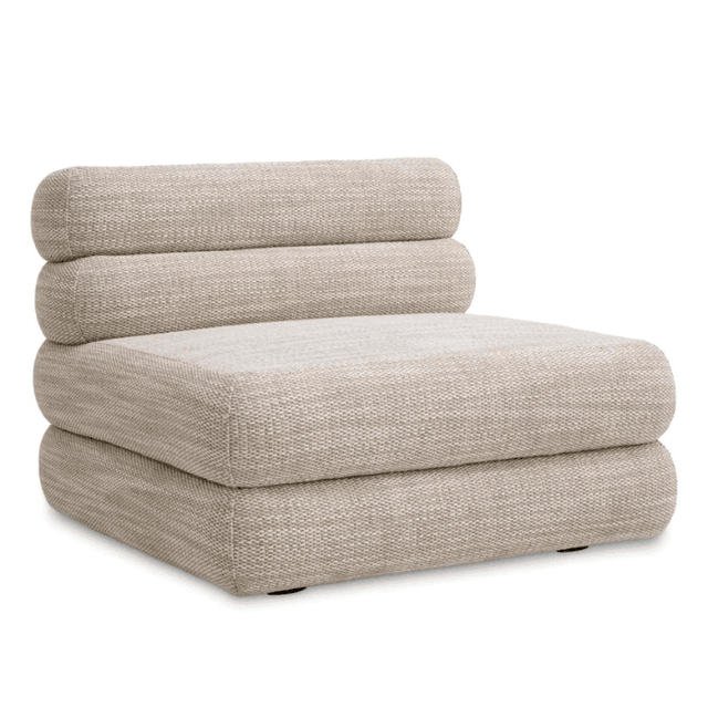 Fedezd fel a moduláris Malaga szövet kanapé nyújtotta luxust, amely kifinomult homokszínű kárpitozással készült. Az Eichholtz jellegzetes kézművességét tükrözve ez a kanapé elengedhetetlen darab egy modern életstílushoz. A középső moduláris elem elegáns kényelmet visz a nappalidba és lehetővé teszi, hogy egyedi ülőhelyet alakíts ki. Bátran kombináld más darabokkal a Malaga kollekcióból, de önmagában is remekül használható. Emellett a kanapé tökéletesen ötvözi a stílust és a funkcionalitást, így bármilyen belső térben megállja a helyét. Az egyedi kialakítás lehetőséget ad arra, hogy mindig új variációkat próbálj ki a térben. Élvezd a modern luxust és teremts olyan életteret, amely igazán a tiéd!