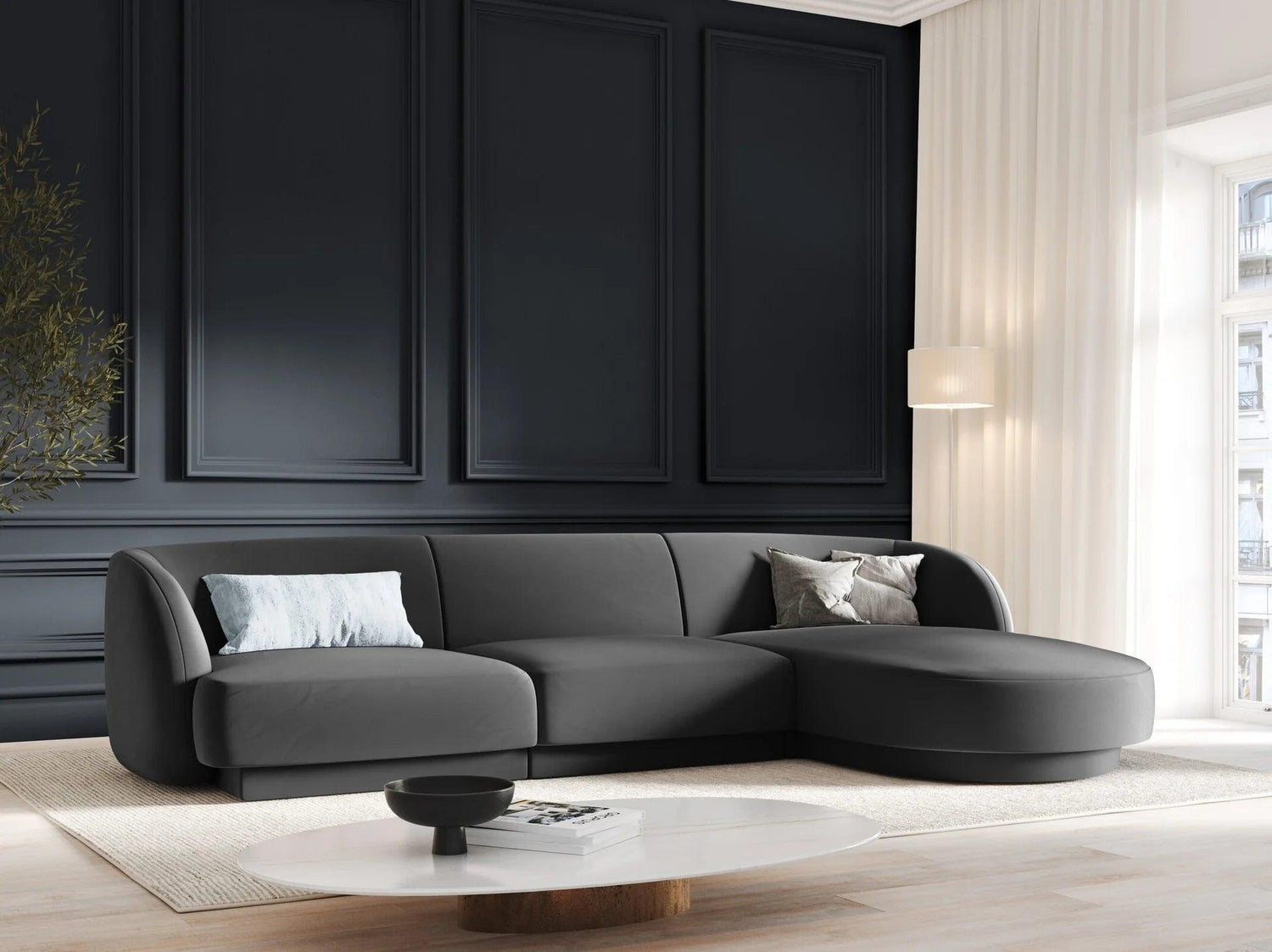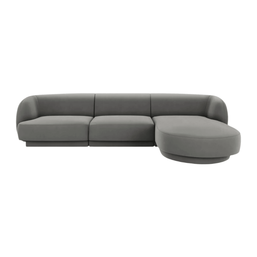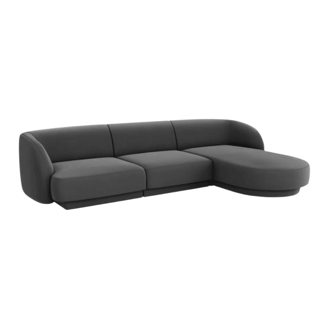 Miley jobbos bársony sarokkanapé 255x156 - Sötétszürke utólagos megrendelésre kerül, és azonnal kiszállítjuk, amint újra raktáron van.
