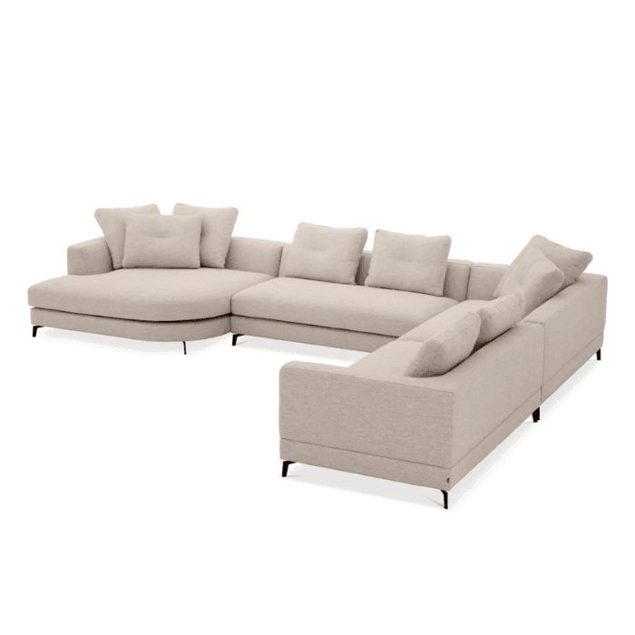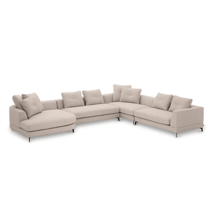 A Moderno U alakú szövet kanapé modern érzékenységet és letisztult sziluettet tár eléd rengeteg férőhellyel. A fekete lábak mesés kontrasztot alkotnak a pazar színű kárpittal, így a kifinomult luxus érzését teremti meg. A díszpárnák biztosítják a teljes ellazulás lehetőségét. Engedd, hogy a Moderno sU alakú szövet kanapé csábító formája magával ragadjon a nappalidban. Tökéletes választás, ha egy modern, mégis kényelmes bútordarabot keresel. A kanapé elegáns, mégis visszafogott megjelenése bármely belső térbe remekül kiemelkedik.