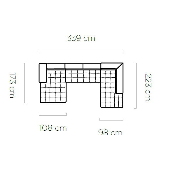 Méretek340 cm, 220 cm, 75 cm