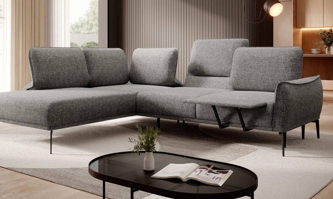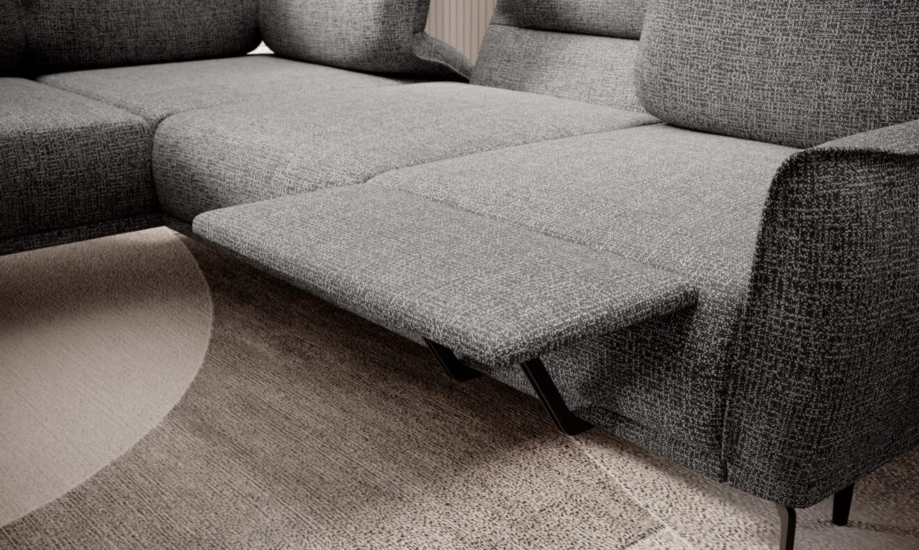 A letisztult és stílusos Storm L sarokkanapé mindenki tetszését elnyeri, aki értékeli a modern designt és a funkcionális megoldásokat. A csúsztatható háttámlák könnyedén hátra dönthetők, lehetővé téve a kényelmes, félig fekvő helyzet felvételét. Az elektromosan kinyitható lábtartó nemcsak élvezetessé teszi a bútor használatát, hanem lehetővé teszi, hogy a sarokkanapét a felhasználó egyéni igényeihez igazítsuk. Ennek a megoldásnak köszönhetően a bútor nemcsak megjelenésével tűnik ki, hanem mindenekelőtt a legmagasabb szintű relaxációt garantálja.