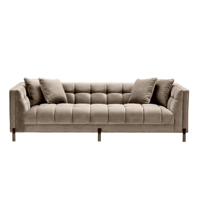 Sienna bársony kanapé fekete lábbal - Világosbarna utólagos megrendelésre kerül, és azonnal kiszállítjuk, amint újra raktáron van.