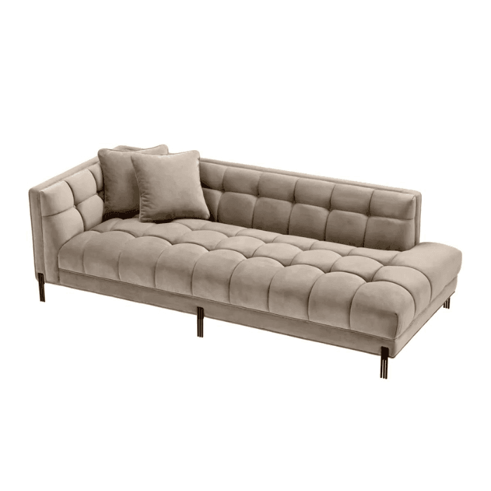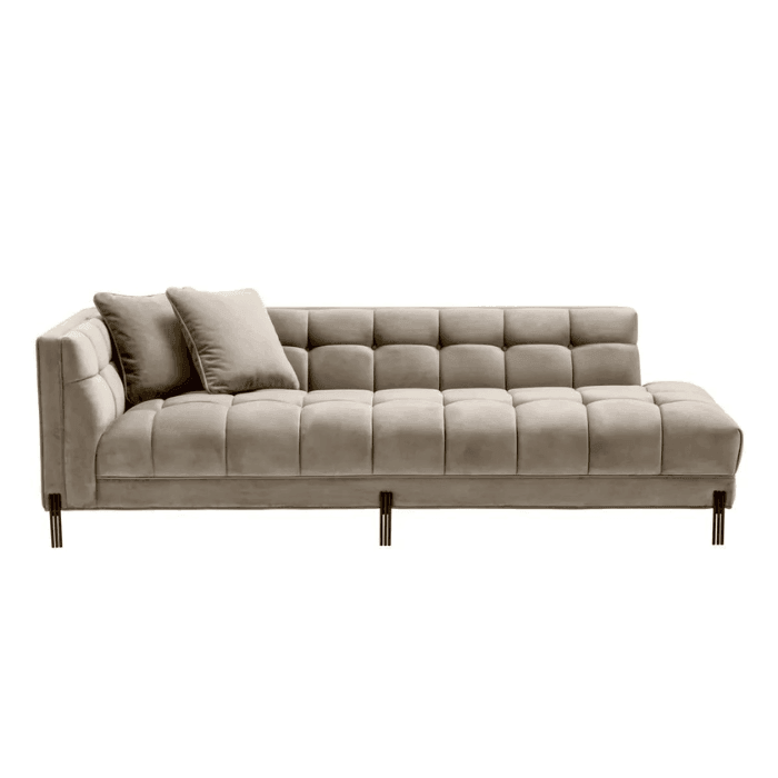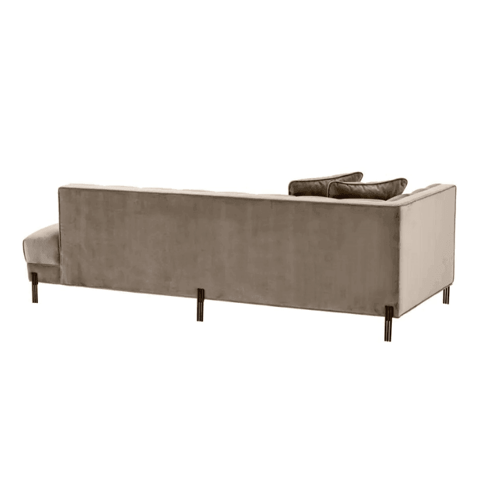 Sienna bársony kanapé fekete lábbal balos - Világosbarna utólagos megrendelésre kerül, és azonnal kiszállítjuk, amint újra raktáron van.