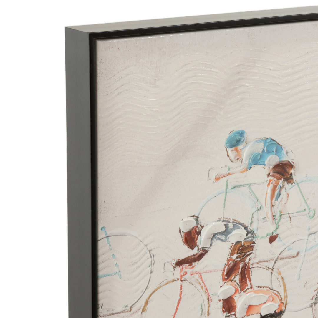 A fekete fa kerettel rendelkező Cyclists vászon falikép energikus, és dinamikus hatást kelthet bármely belső térben. A lágy és élénk színek kontrasztos megjelenítése harmonikus összhatást kelt, miközben a keret kiemeli minden térből. A kép mérete 180x100 cm, így tökéletes választás nagyobb helyiségek dekorálásához.