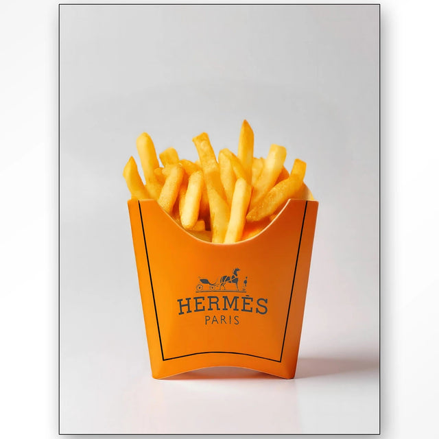 A Hermes Fries egy extravagáns kompozíciót mutat be, amely az ikonokis divatház logóját kombinálja az ikonikus gyorsétellel. Ez a kombináció sokak kedvence lehet, ezáltal kiválóan alkalmas a modern életterekbe. A kép különböző méretekben kapható, így minden lakásba tökéletesen illeszkedhet. A képet keretezve szállítjuk.