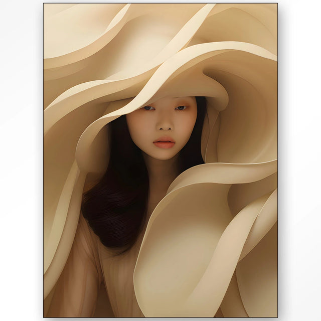 A Light Flow dizájn vászonkép elegáns női alakot mutat be, aki körül harmonikusan burjánzik letisztult, bézs színű kalapja. A női arc kifejező, visszafogott szépsége magára vonzza a tekintetet. A kép különböző méretekben kapható, így minden lakásba tökéletesen illeszkedhet. A képet keretezve szállítjuk.