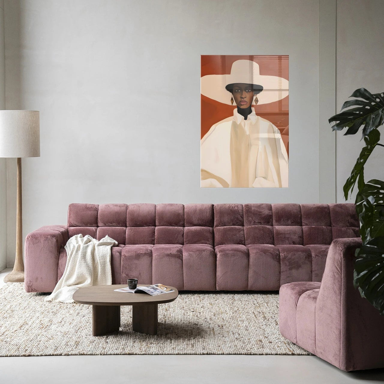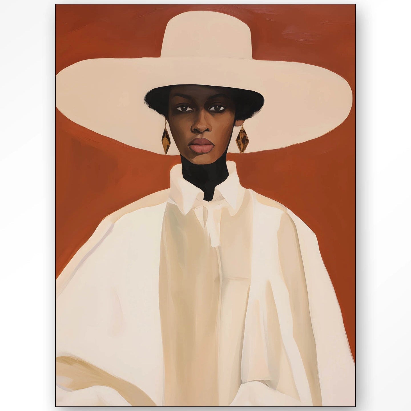 A Louise egy kifejező arcú női alakot mutat be, akinek fejét fehér kalap koronázza. A terrakotta és bézs színvilág rendkívül harmonikus és letisztult hatást kelt, részletgazdag kivitelezése pedig fokozza esztétikai értékét. A kép különböző méretekben kapható, így minden lakásba tökéletesen illeszkedhet. A képet keretezve szállítjuk.