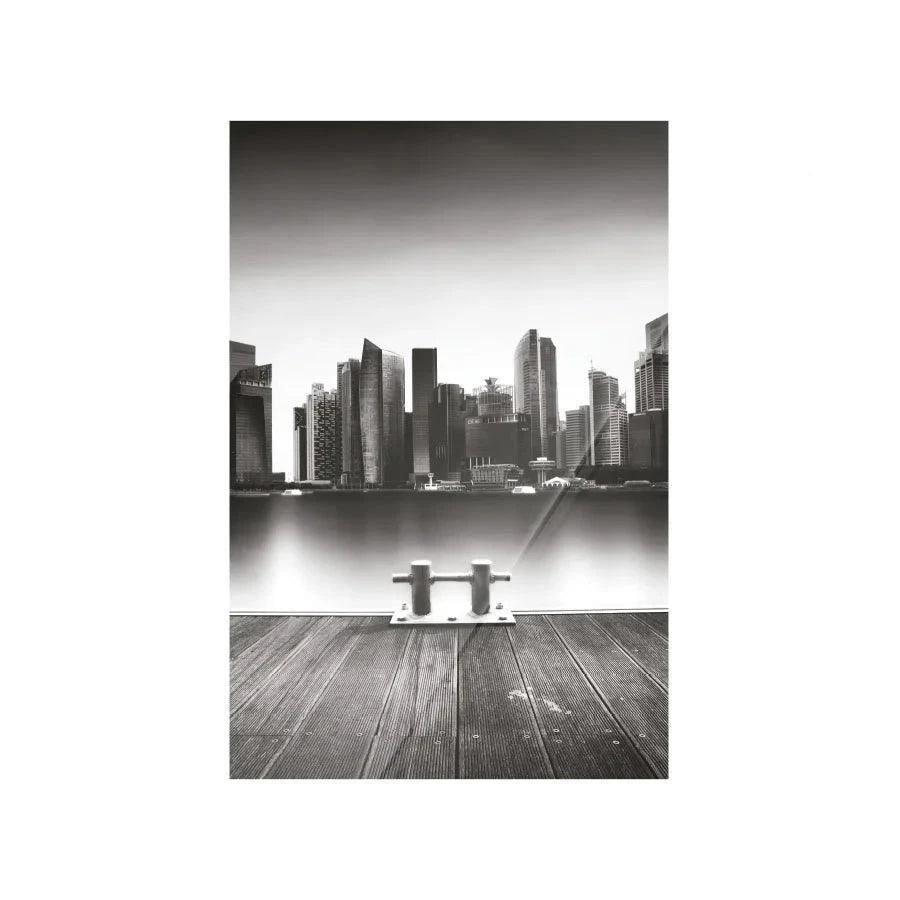 A Momentarily Silent című falikép lenyűgöző vizuális élményt nyújt, amely a nyüzsgő város életét és a nyugodt víz tükörképet állítja párhuzamba. A fekete-fehér színhasználat drámai hatást kelt, kiemelve az ember alkotta épületek geometrikus formáit, valamint a természet csendes szépségét. Ez a mű nem csupán a két világ közötti feszültséget mutatja be, hanem arra is rávilágít, hogy bár a városi környezet vibráló és élettel teli, a természet nyugalmára mindig szükség van a harmónia megteremtéséhez.