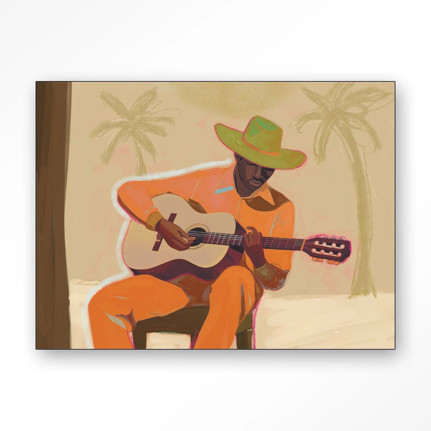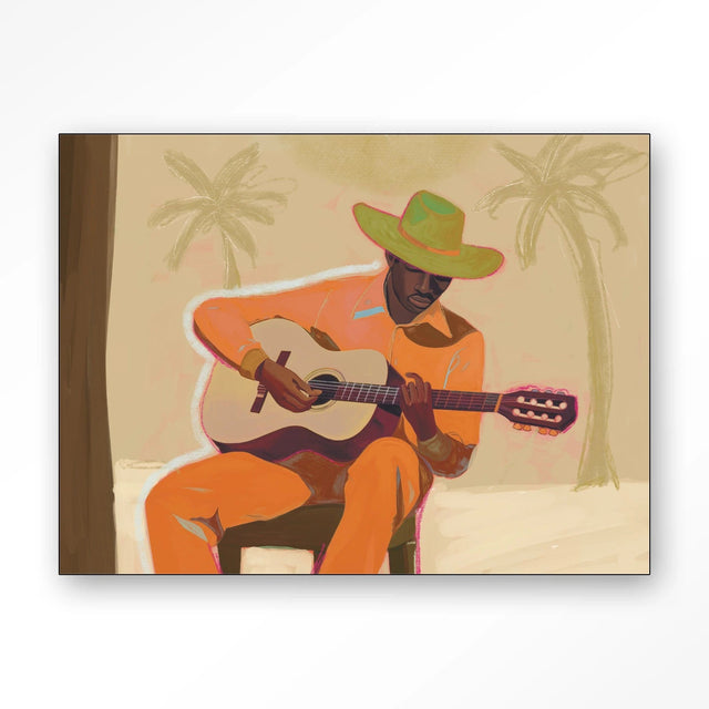A Musician 2 egy derűs hangulatú dizájn vászonkép, amely megörökíti a karibi hangulatot egy autentikus zenészen és kifejező színvilágán keresztül. A háttérben megfigyelhető pálmafák fokozzák a kép egzotikus hangulatát. A kép különböző méretekben kapható, így minden lakásba tökéletesen illeszkedhet. A képet keretezve szállítjuk.