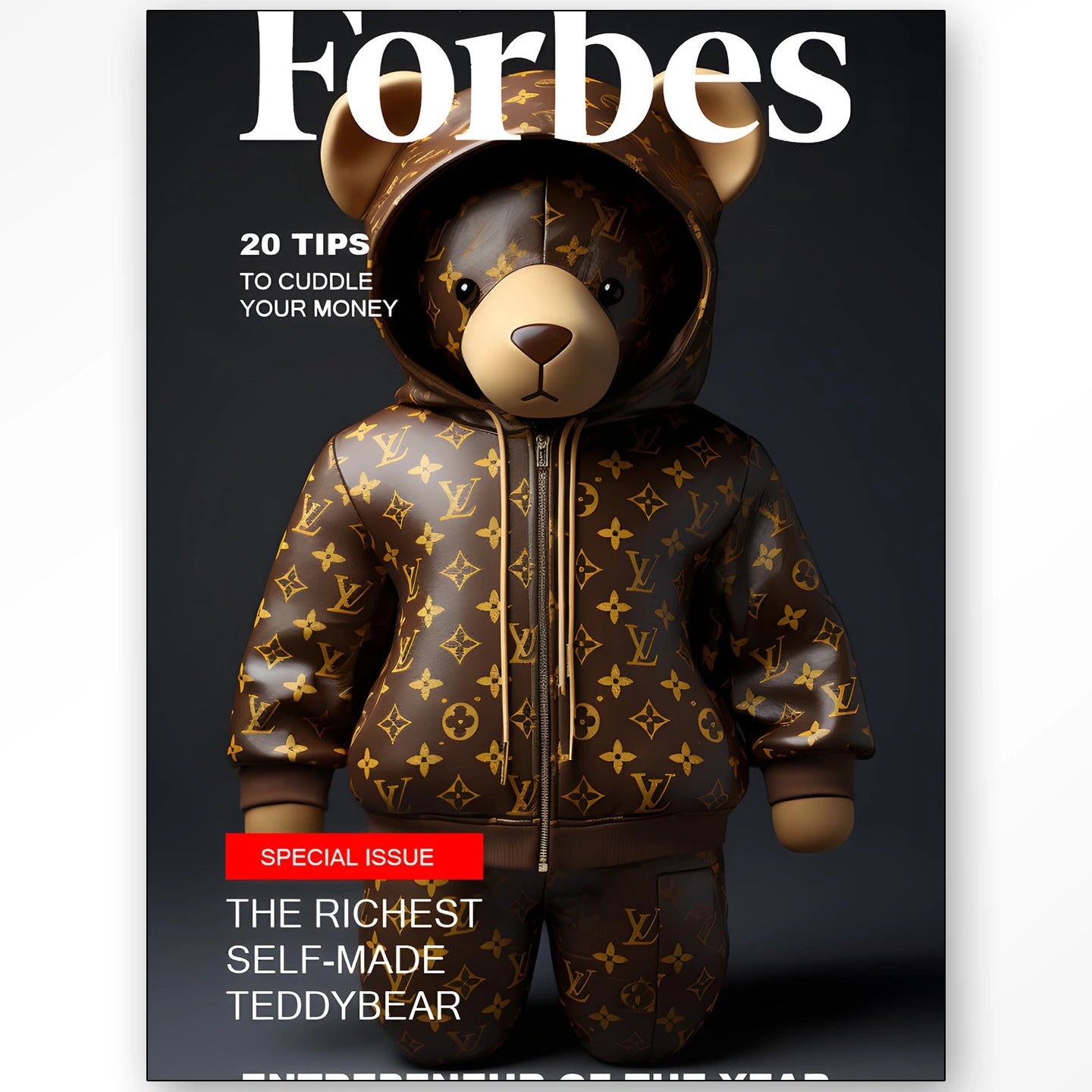 A Selfmade Teddybear egy extravagáns stílusú dizájn vászonkép. Főszereplője egy vagány mackó, exkluzív luxusmárka logójával ellátott öltözetben, méghozzá a címlapon. Kiváló dekoráció azok számára, akik kedvelik az egyedi koncepciókat és kifejező karakterre vágynak otthonukban. A kép különböző méretekben kapható, így minden lakásba tökéletesen illeszkedhet. A képet keretezve szállítjuk.
