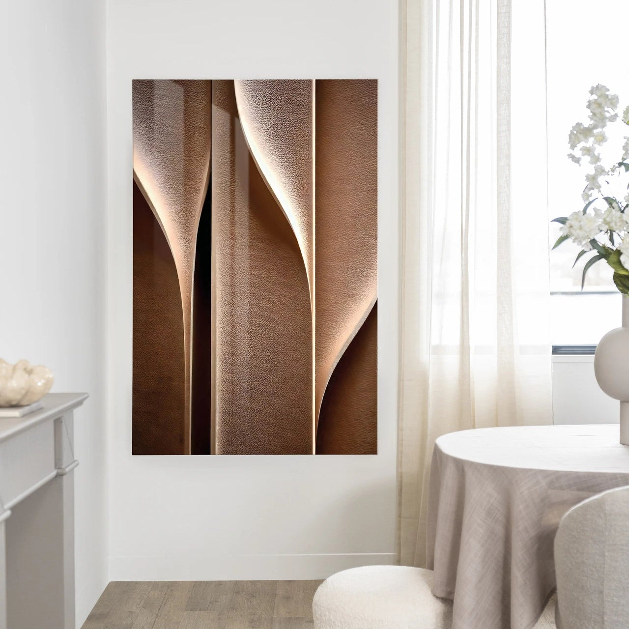 A Whispering Curves dizájn vászonkép egy letisztult kompozíciót jelenít meg, melynek rétegeiben a bronz különböző árnyalatai jelennek meg. Minimalista és kortárs koncepció, amely kiválóan illik a modern enteriőrbe. A kép különböző méretekben kapható, így minden lakásba tökéletesen illeszkedhet. A képet keretezve szállítjuk.