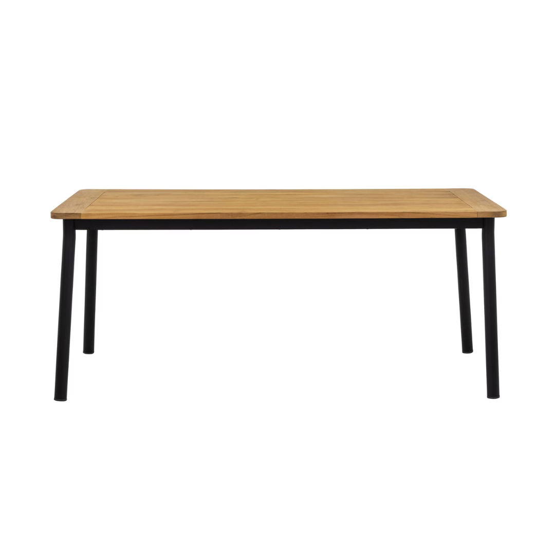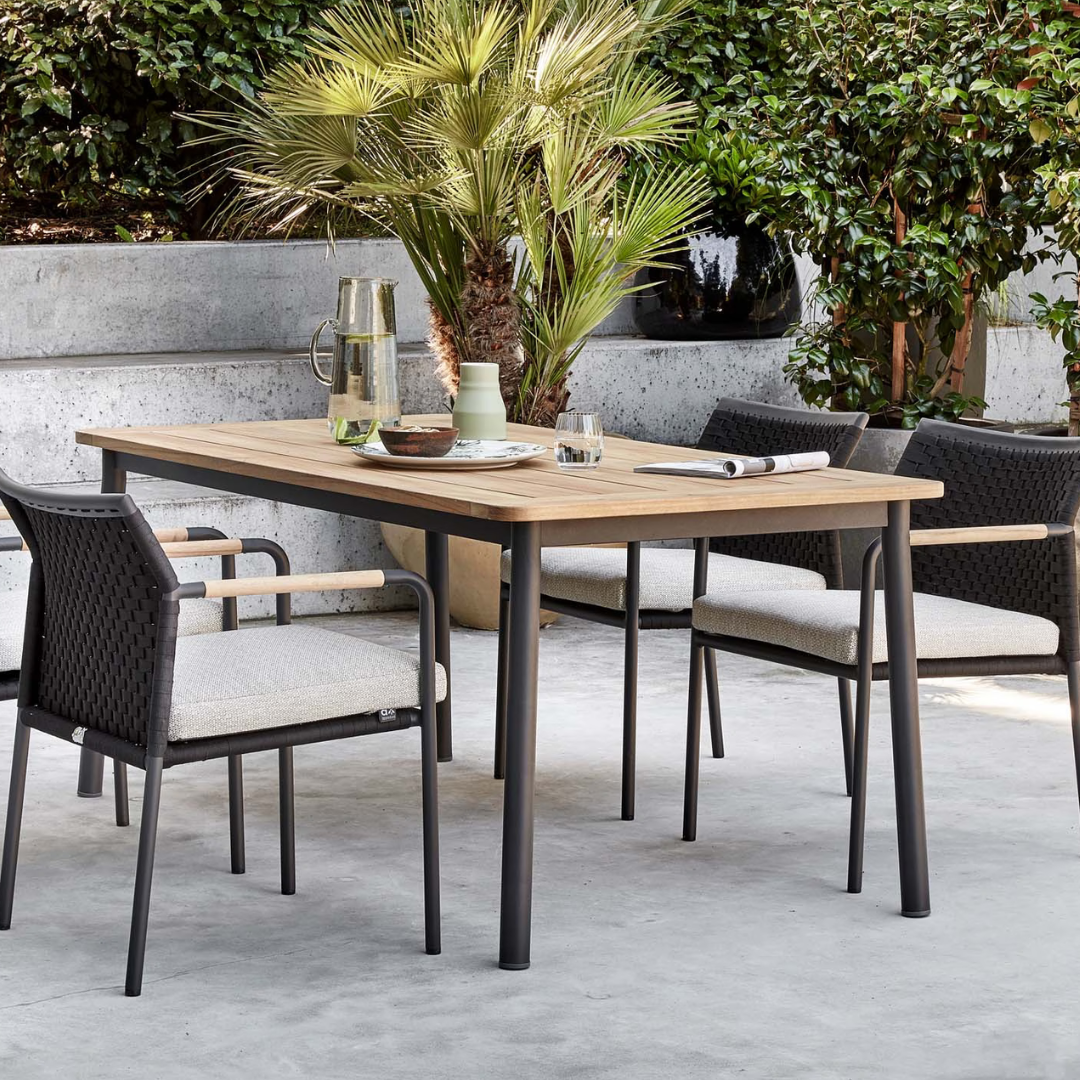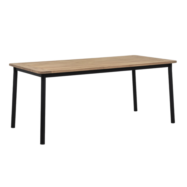 Az Elle kollekció Dining részlegének étkezőasztala egy elegáns és kifinomult központi elem. Asztallapja teakfából készült, ami nagyon szépen illeszkedik a fekete fám lábazatához. A Teakfa egy rendkívül ellenálló fa anyag, ami kiválóan alkalmas kültéri használatra. Kombináld a kollekció étkezőszékeivel a teljes összkép érdekében.