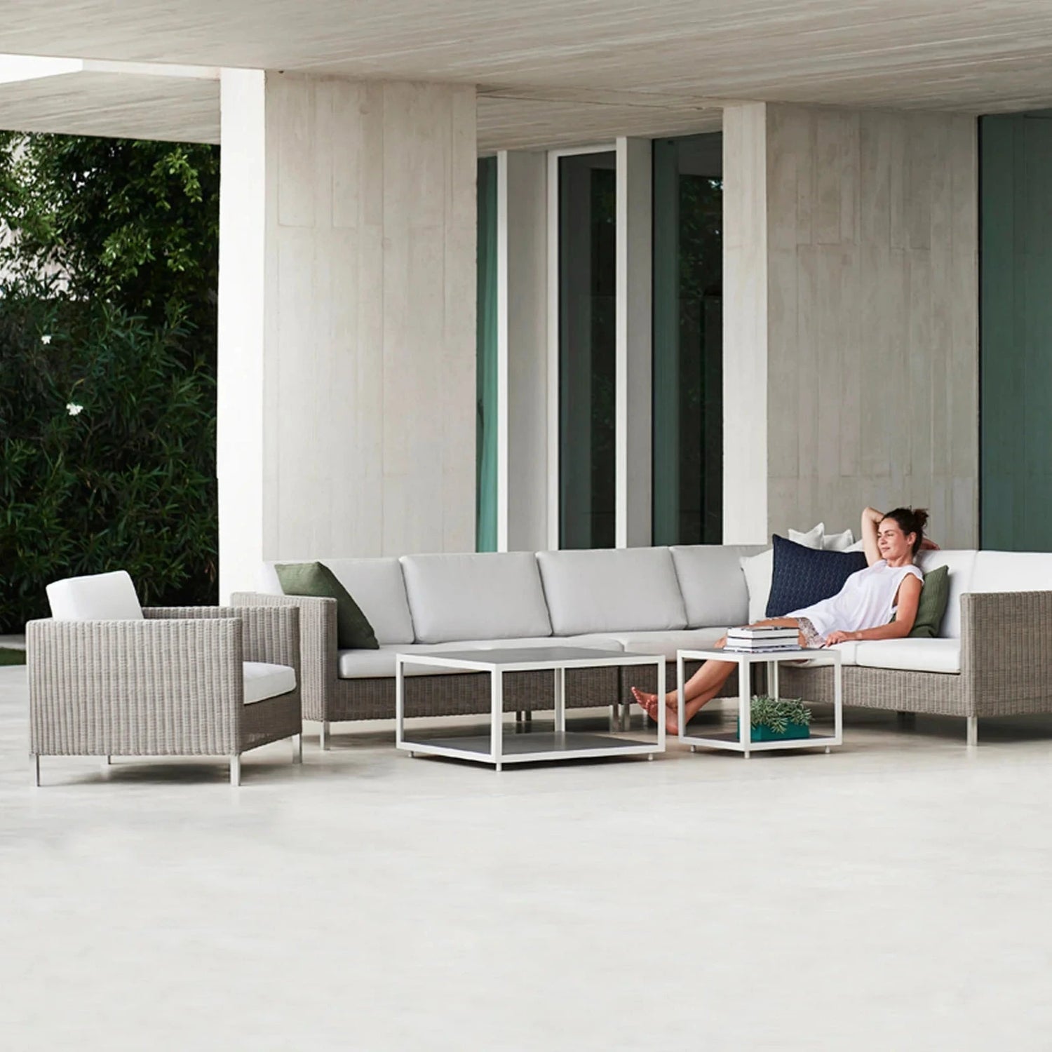 A Connect kerti fotel nagyon modern, időtlen és letisztult formavilággal rendelkezik. A bútor remekül mutat elegáns teraszon, divatos erkélyen, vagy akár egyetlen fotelként a verandán. Cane-line Weave® anyagból készült, ami egy hihetetlenül időjárásálló anyag, és nem fakul a napfényben. A vastag párnák pedig maximális kényelmet biztosítanak.