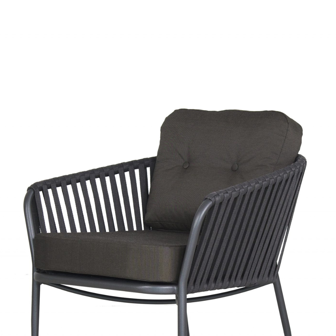 A Rattan Sedia gyártó Darya kerti fotele egy modern megjelenésű kültéri bútor, amely elegáns sötétszürke színben kapható. A függőlegesen szőtt háttámla légies könnyedséget, míg a puha párnák, és a karfák kényelmes ülésélményt nyújtanak. Az alumínium váz pedig tartós, és stabil alapot biztosít. Anyagainak, és stílusos kialakításának köszönhetően tökéletes választás lehet bármely külső helyszínre.