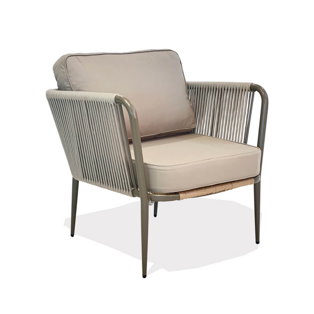 A Rattan Sedia gyártó Donna kerti fotele egy modern megjelenésű kültéri bútor, amely világosszürke színű vázzal kapható. Kagyló szerű kialakítása, szövet felületei, és puha párnái miatt kiválóan alkalmas a hosszú pihenésekre is a szabadban. Alumínium váza pedig tartós, és stabil alapot nyújt.