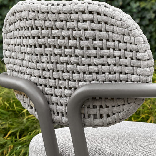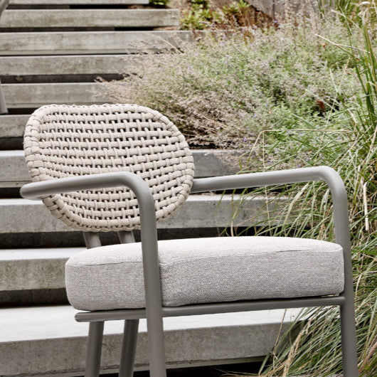 Az Apple Bee Lugano egy társalgószék, ami nemcsak rendkívül kényelmes a vastag Bee Wett® párnájának köszönhetően, hanem igazi szemet gyönyörködtető dizájnelem is. Kialakítását elegáns, kerek alumíniumcsövek jellemzik, amelyeket gyönyörűen megmunkáltak. A Lugano esetében fordíts különös figyelmet a karfákra éss a kötélből fonott részletekre, amelyek különleges megjelenést kölcsönöznek a fotelnek. Ugyanez az elv érvényesül a hozzá illő asztalnál is, harmonikus összképet alkotva.