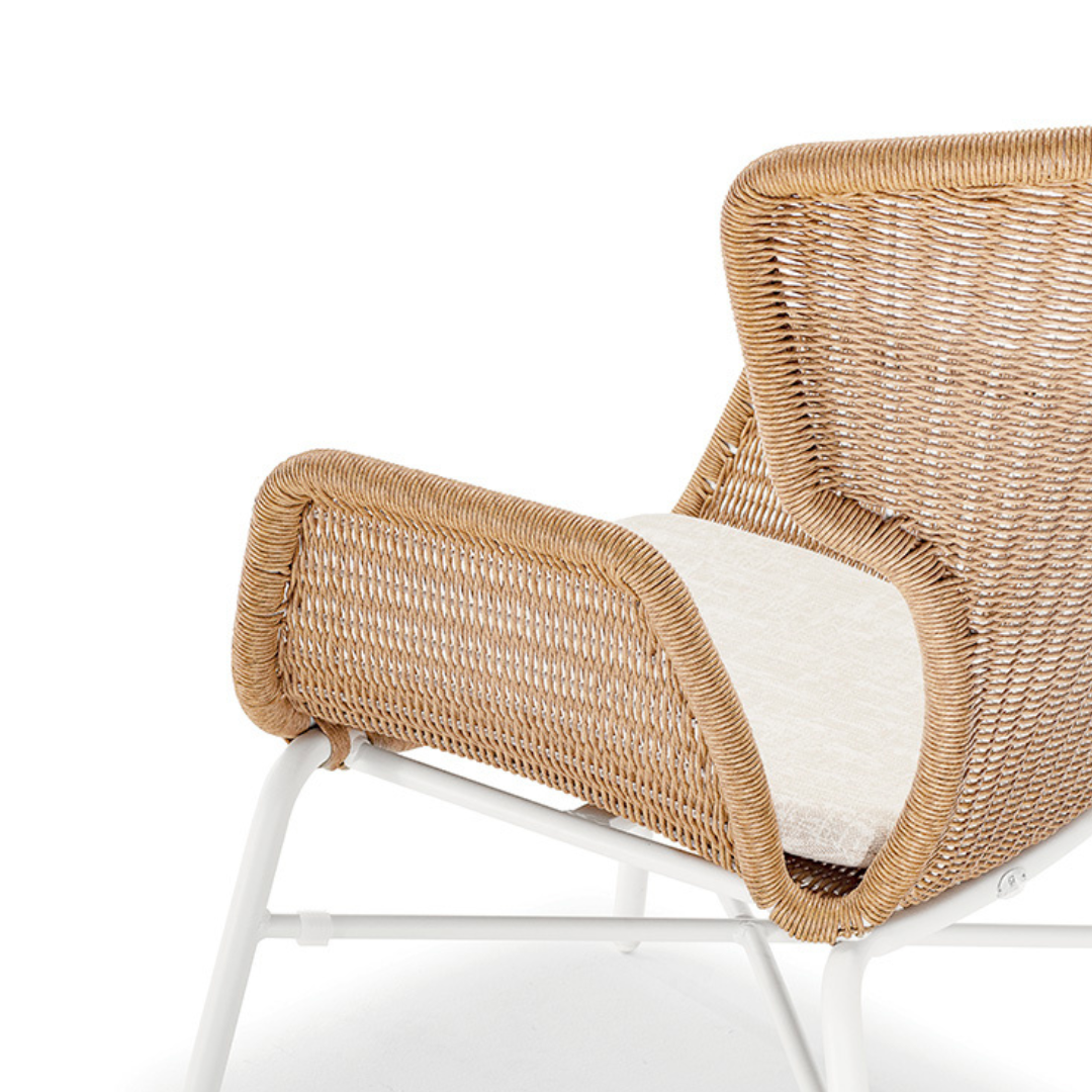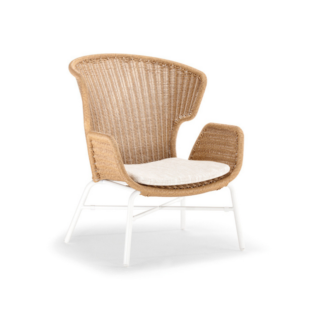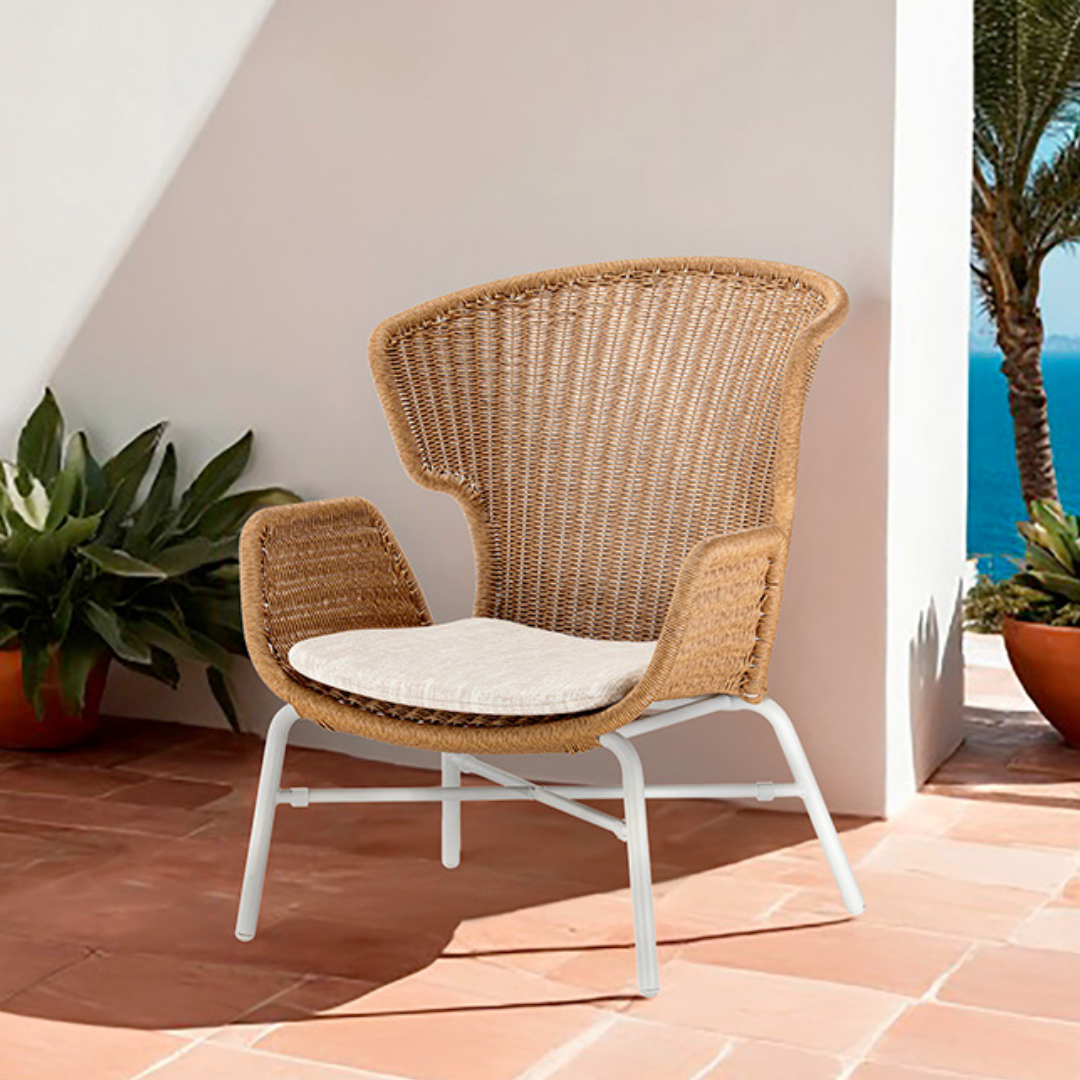 A szintetikus anyagból készült Ocean kerti fotel ötvözi a modern jellemzőket a klasszikus megjelenéssel. Natúr színű, ívelt ülése, magas háttámlája, és karfái maximális kényelmet, míg a vékony, fehér alumínium váz tartást, és stabilitást biztosítanak. Stílusos, és hagyományos, így könnyedén illeszkedik bármilyen kültéri helyszínre.