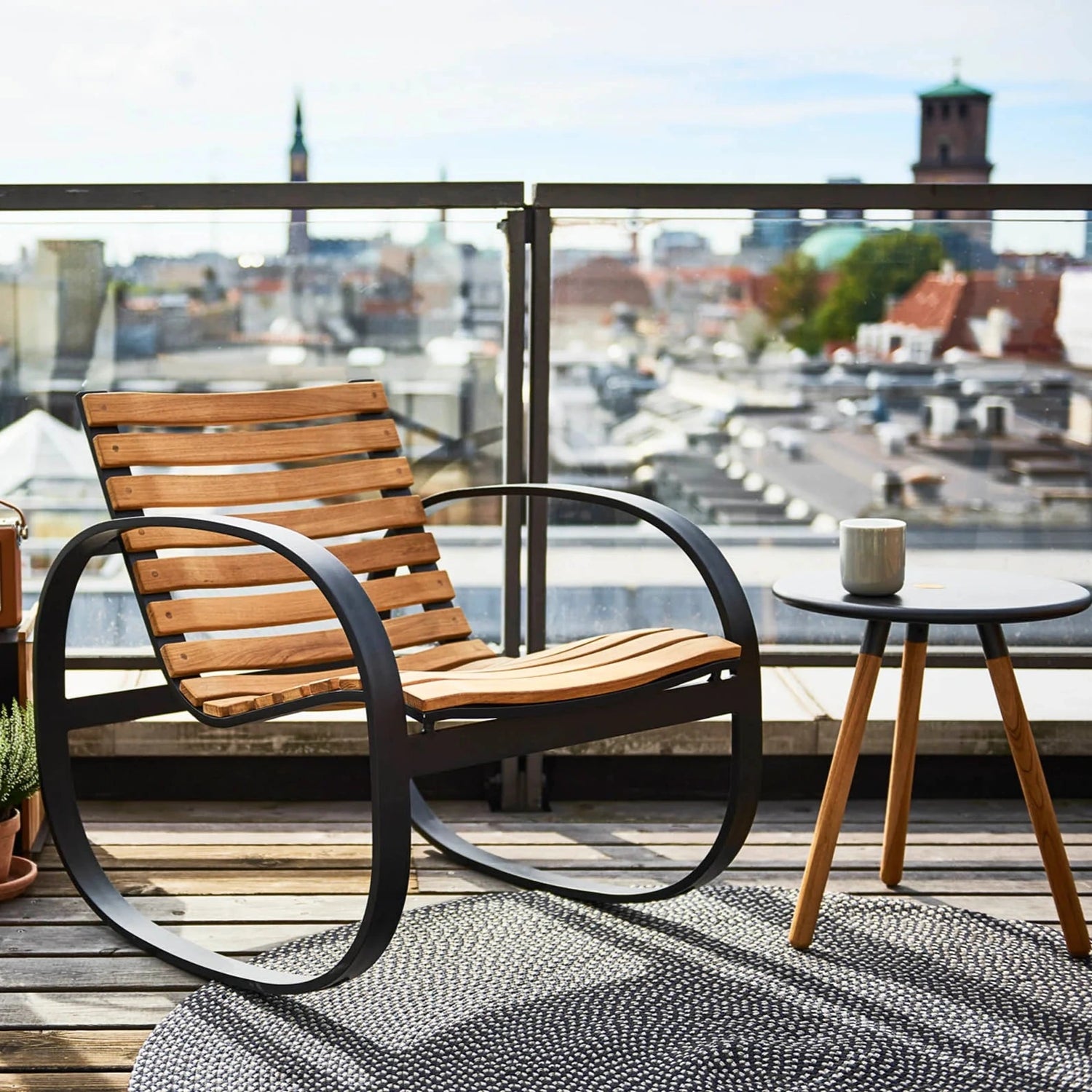 A Parc kerti hintaszék egy kifinomult és exkluzív bútordarab, amelyet a dán Foersom & Hiort-Lorenzen MDD duó tervezett. A hintaszék szemet gyönyörködtető dizájnnal rendelkezik, és prémium tíkfából készült, így szoborszerű formájával és elegáns alumínium vázával a természetes és minimalista stílus kombinációját adja. Ezt a modellt a kényelem szem előtt tartásával tervezték, hiszen az ülés és a háttámla formája követi a test formáját.