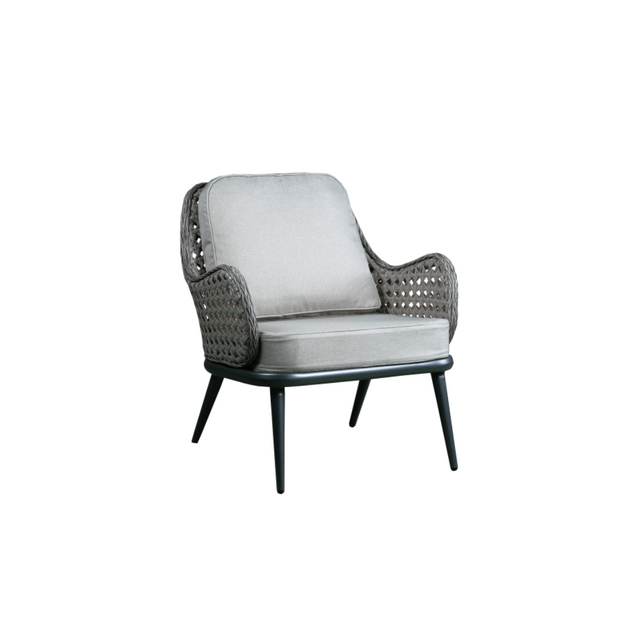 A klasszikus, mégis modern megjelenésű Victoria kerti fotel semleges, világosszürke színben kapható. A modell alumínium vázzal, rattan felületekkel, és szövet párnával rendelkezik. Döntött háttámlája, íves karfái, és puha párnája rendkívüli kényelmet biztosít, stílusa miatt pedig könnyedén illeszthető bármilyen kültéri környezetbe.