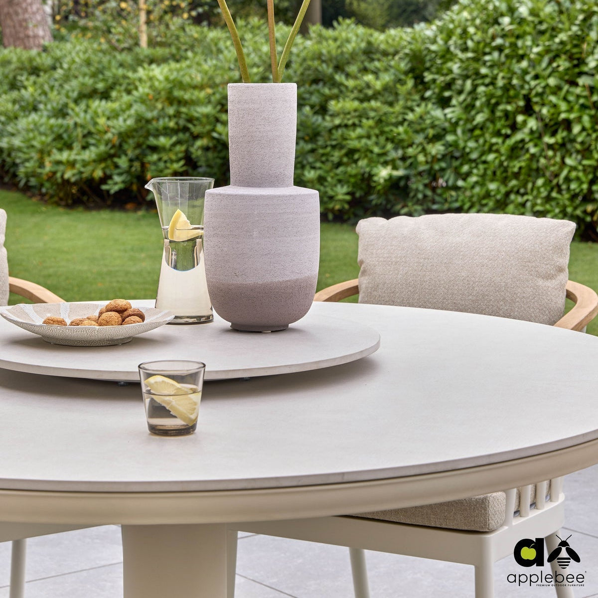 Az elegáns Melville asztallapra helyezhető forgótál színterezett kőből készült. Ez a kiváló minőségű anyag karbantartásmentes, karcálló és könnyen tisztítható, így tökéletes kültéri használatra. Ez a stílusos és praktikus kiegészítő nemcsak megkönnyíti az ételek megosztását, hanem kifinomult megjelenést is kölcsönöz az asztalnak. Átmérője: 60 cm. A Melville kerti asztal külön megvásárolható.