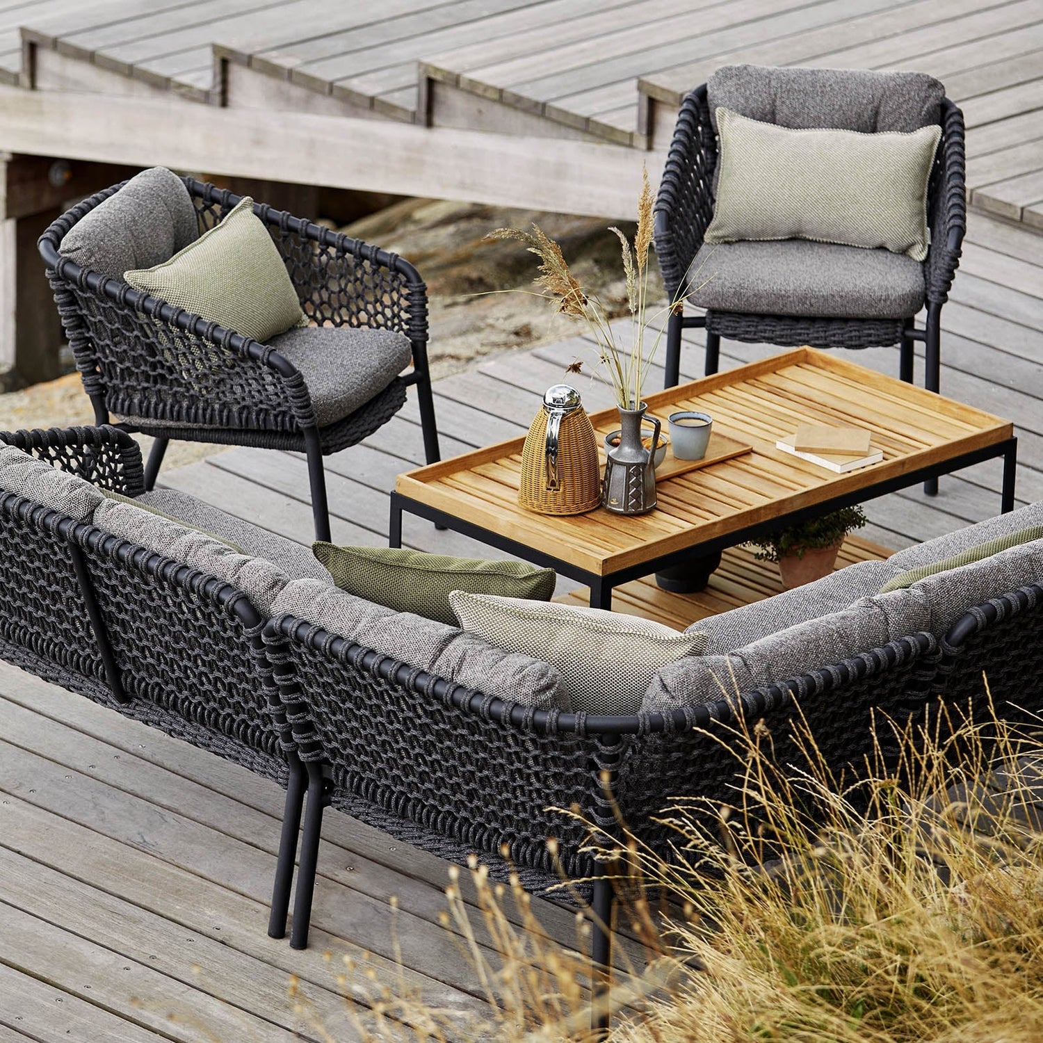 A 122x62 cm-es Level egy minimalista és időtlen kerti dohányzóasztal, amelyet a ByKATO dizájnerduó tervezett. A Level dohányzóasztal háromféle méretben érhető el, így kiváló választás lehet bármilyen kültéri helyszínre. Ez az asztal több szinttel készült, így asztalként is használható, ugyanakkor tárolási vagy dekorációs funkciót is betölthet. Sötétszürke porszórt alumínium kerettel, valamint natúr színű tíkfa felületekkel kapható.