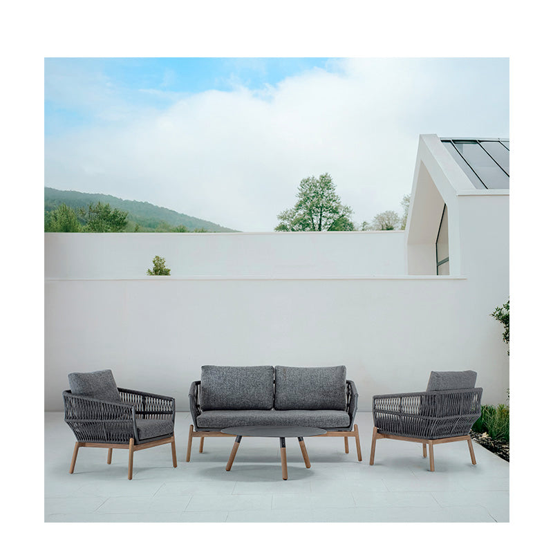 Az Alicante kerti kanapé szett egy elegáns és modern megjelenésű bútorcsalád, amely kényelmesen párnázott ülőfelületeivel tökéletes kikapcsolódást nyújt a szabadban. A minőségi anyagokból készült szett tartalmaz egy kanapét, két fotelt és egy dohányzóasztalt. Ideális választás mindenki számára, aki stílusos és komfortos berendezést keres a kertjébe. Méretek: kanapé 154x76x70cm, fotel 72x76x70cm, asztal Ø90x35cm.