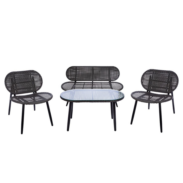 A Cannobio egy modern és romantikus hangulatot teremtő, antracit színű kerti ülőgarnitúra szett, amihez 2 szék (62x64x75 cm), egy pad (129x64x75 cm) és egy dohányzóasztal (85x44x44 cm) tartozik. Fém szerkezetét műrattan üléssel látták el, ami amellett, hogy látványos, kényelmes pihenést biztosít. A dohányzóasztal lapja üveggel van ellátva.