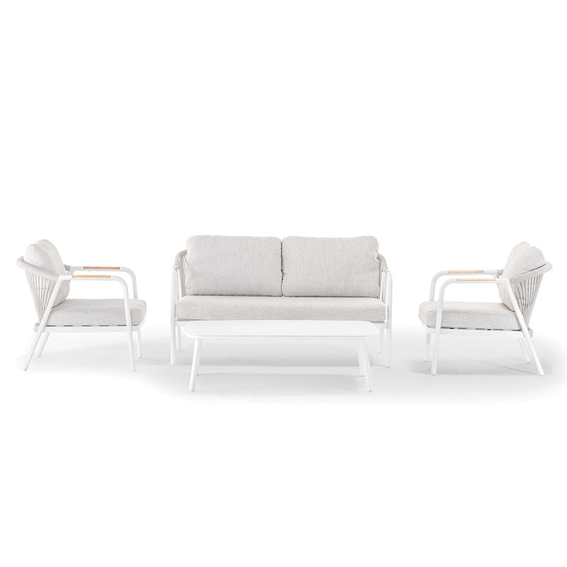 A Cordoba kerti kanapé szett egy letisztult és modern megjelenésű bútorcsalád, amely kényelmesen párnázott ülőfelületeivel tökéletes kikapcsolódást nyújt a szabadban. A minőségi anyagokból készült szett tartalmaz egy 2 személyes kanapét, két fotelt és egy dohányzóasztalt. Kétféle színben is elérhető, így ideális választás mindenki számára, aki stílusos és komfortos berendezést keres a kertjébe. Méretek: kanapé 142x80x74 cm, fotel 68x80x74 cm, asztal 90x90x37 cm.