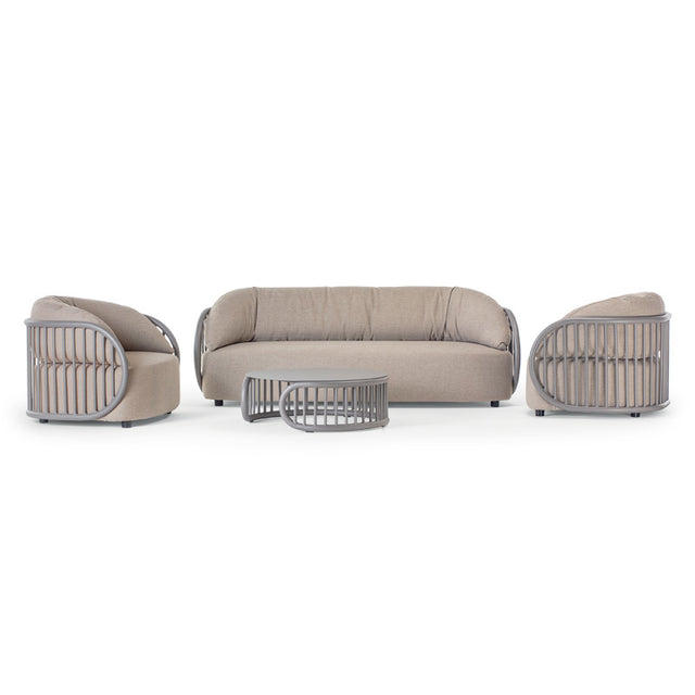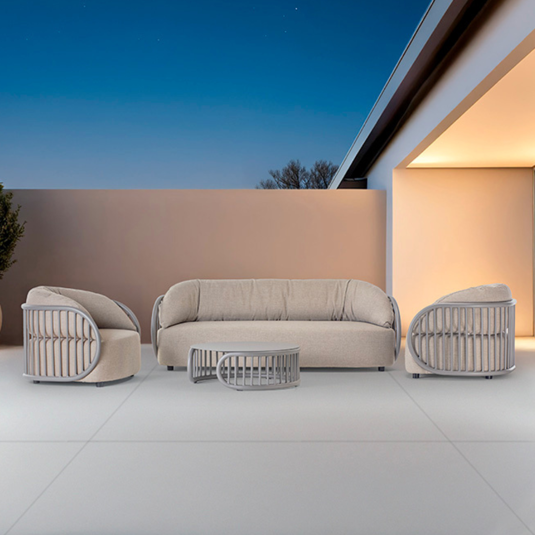 A Nest kerti kanapé szett ideális választás a kert vagy terasz berendezésére. A szett tartalmaz egy két személyes kanapét, két fotelt és egy dohányzóasztalt, így teljes kényelmet és praktikumot biztosít. A bútorok kiváló minőségű és strapabíró anyagból készültek, ami garantálja hosszú élettartamukat. A különleges design, és az ízléses színösszeállítás teszi lehetővé, hogy könnyedén beilleszthető legyen bármilyen stílusú kültérbe. Méretek: kanapé 213x89x80 cm, fotel 108x89x80 cm, asztal Ø86x30cm.
