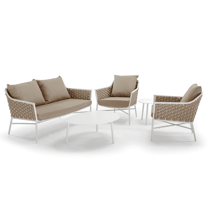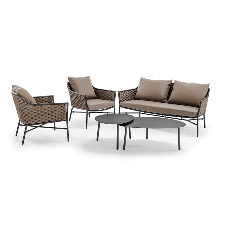 A Panama kerti kanapé szett ideális választás a kert vagy terasz berendezésére. A szett tartalmaz egy kétszemélyes kanapét, két fotelt és egy dohányzóasztalt, így tökéletes lehetőséget kínál a pihenésre és kikapcsolódásra a szabadban. Négyféle színösszeállításban kapható, így könnyen illeszthető bármilyen környezetbe. A Bútorok méretei: kanapé 76x160x77cm, fotel 76x73x77cm, asztal 34x100x70cm.