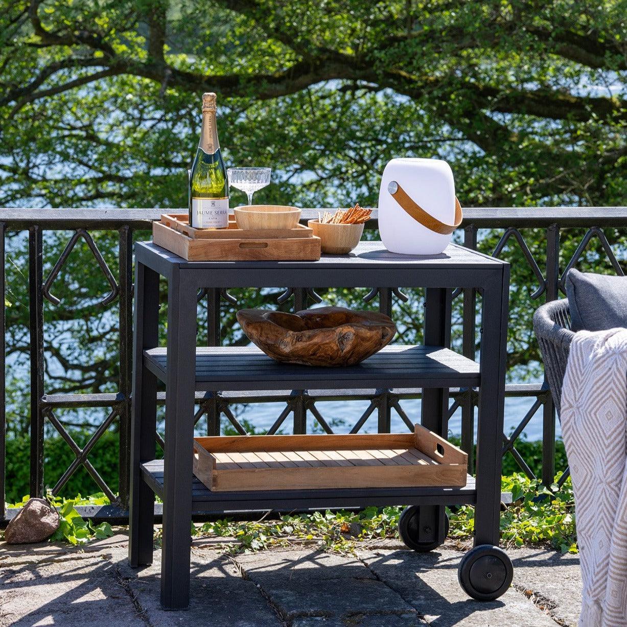 A Taormina sötétszürke zsúrkocsi tökéletes választás bármely otthonba. A 3 polccal rendelkező kocsi praktikus tárolási lehetőséget kínál, míg a fahatású felület elegáns megjelenést kölcsönöz neki. A kocsi méretei 75 x 45 x 75 cm, így könnyen elfér bármely szobában. Könnyen mozgatható, így bármikor áthelyezheted a szükséges helyre.