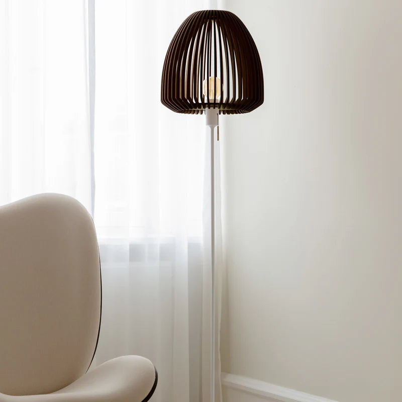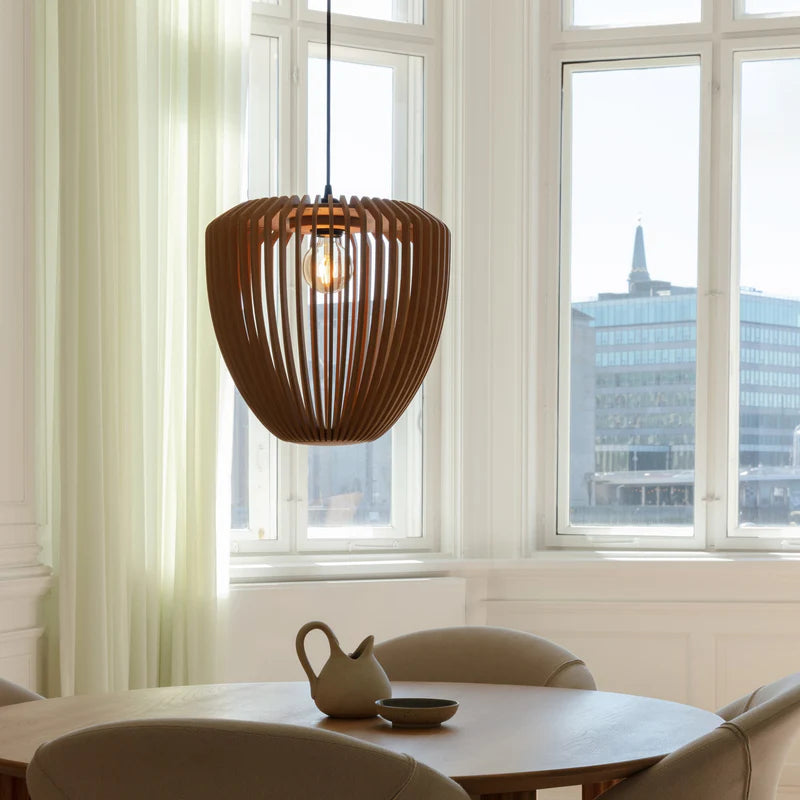 A Clava Wood lámpabúra lézerrel kivágott fa lamellákból készült, gyönyörű fénysugarakat hozva létre a környező tér falain. A fa részletek kifinomult természetességgel gazdagítják a designt és az otthonodat, míg az organikus forma a lámpaernyőt szoborszerű darabként emeli ki. A fa lamellák egyszerű vonalvezetésének köszönhetően a Clava Wood számos környezetbe és helyiségbe illeszkedik, és az étkezőasztalt éppúgy feldobja, mint az előszoba vagy a hálószoba mennyezetét. A lámpabúra ideális kiegészítője a Santé állólámpaállványnak is. Kombinálva nagyszerű állólámpát alkotnak, amelyet elhelyezhet a kanapé mellett vagy otthonodnak bármely olyan sarkában, ahol egy kis extra megvilágításra van szükség.