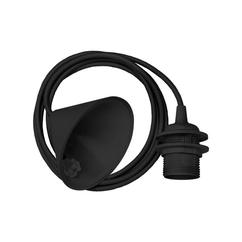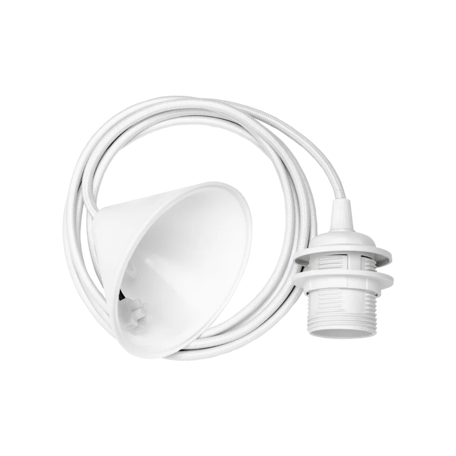 A Cord modern és minimalista kábelkészlet 2,1 méter textilzsinórból, egy takaró ernyőből és egy E27-es foglalatból áll. Fekete vagy fehér kivitelben kapható, adj hozzá izzót és valamelyik UMAGE lámpaernyőnket, hogy létrehozd saját egyedi világítási megoldásodat, amely kiegészíti otthonodat. Az izzó és a lámpabúra nem tartozék.