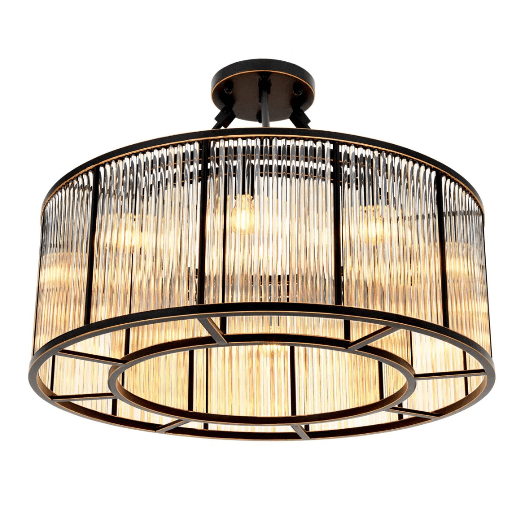 Emeld fel életteredet a Bernardi mennyezeti lámpával, amely kifinomult bronz vagy arany fényezéssel és vintage üveggel rendelkezik. Ez az Eichholtz-exkluzív az 1920-as évek stílusát vezeti be a modern belső terekbe, zökkenőmentesen ötvözi a luxust és a történelmet a világítási megoldásokba. Kétféle színben, és többféle méretben is kapható, ennek a darabnak az átmérője 80cm. Belsejében 10 db izzónak megfelelő hely van.