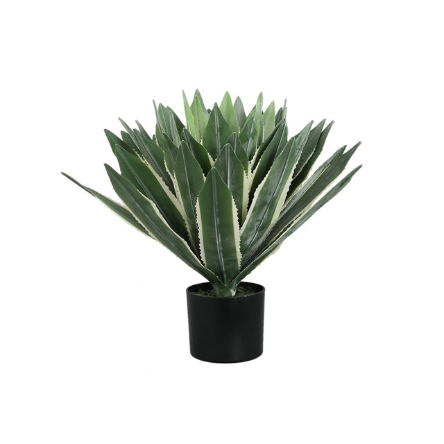 Az Agave műnövény egy mediterrán hangulatú dekorációs elem, amely tökéletesen utánozza az agave kaktusz megjelenését. A kiegészítő természetes zöld árnyalatokban pompázik, így ideális választás otthoni, irodai vagy üzleti környezetbe, hiszen nem igényel ápolást, és mindig friss látványt nyújt. Az Agave kétféle méretben kapható.